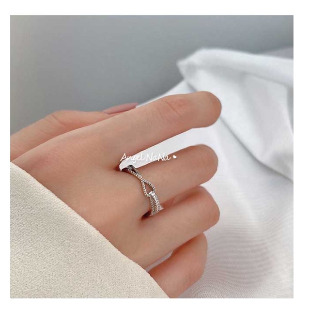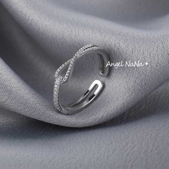 【AngelNaNa】S925通體純銀戒指-可調開口戒交叉線條麻花珍珠鋯石女戒指(SRA0601-19)戒指AngelNaNa官方旗艦店
