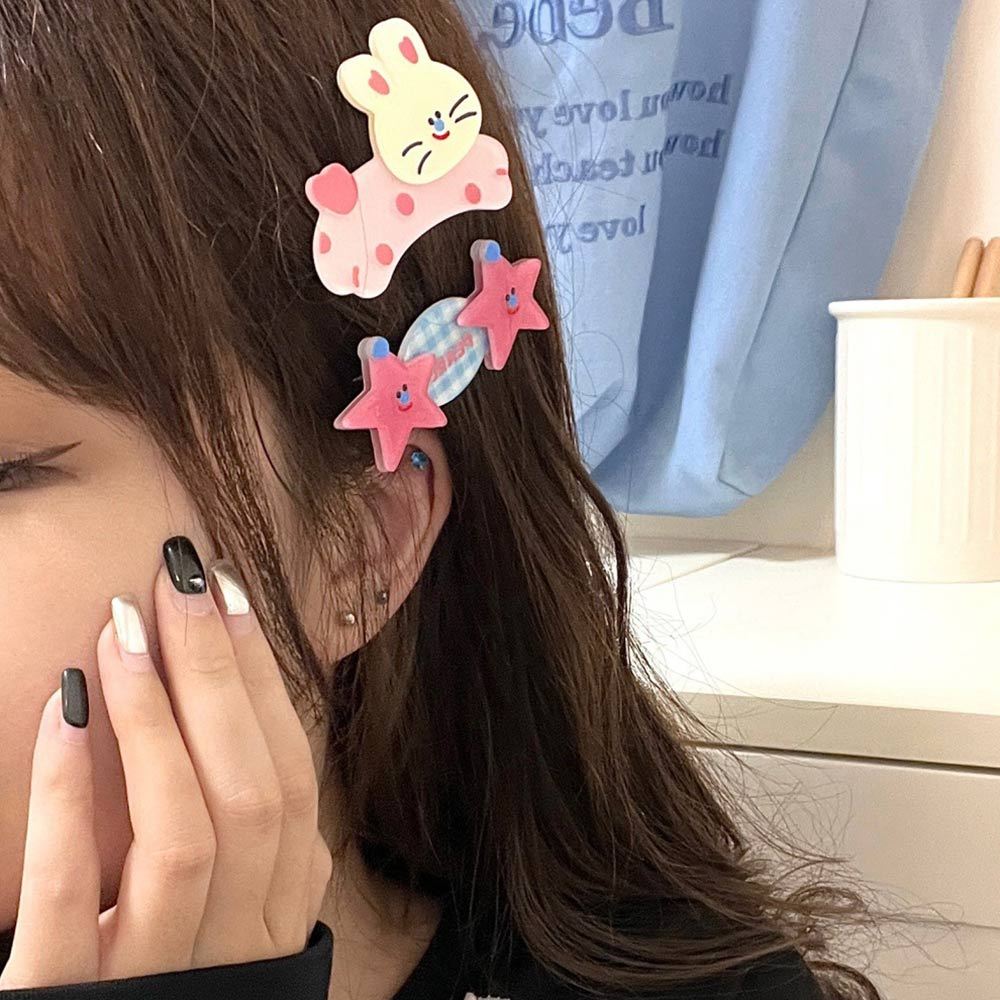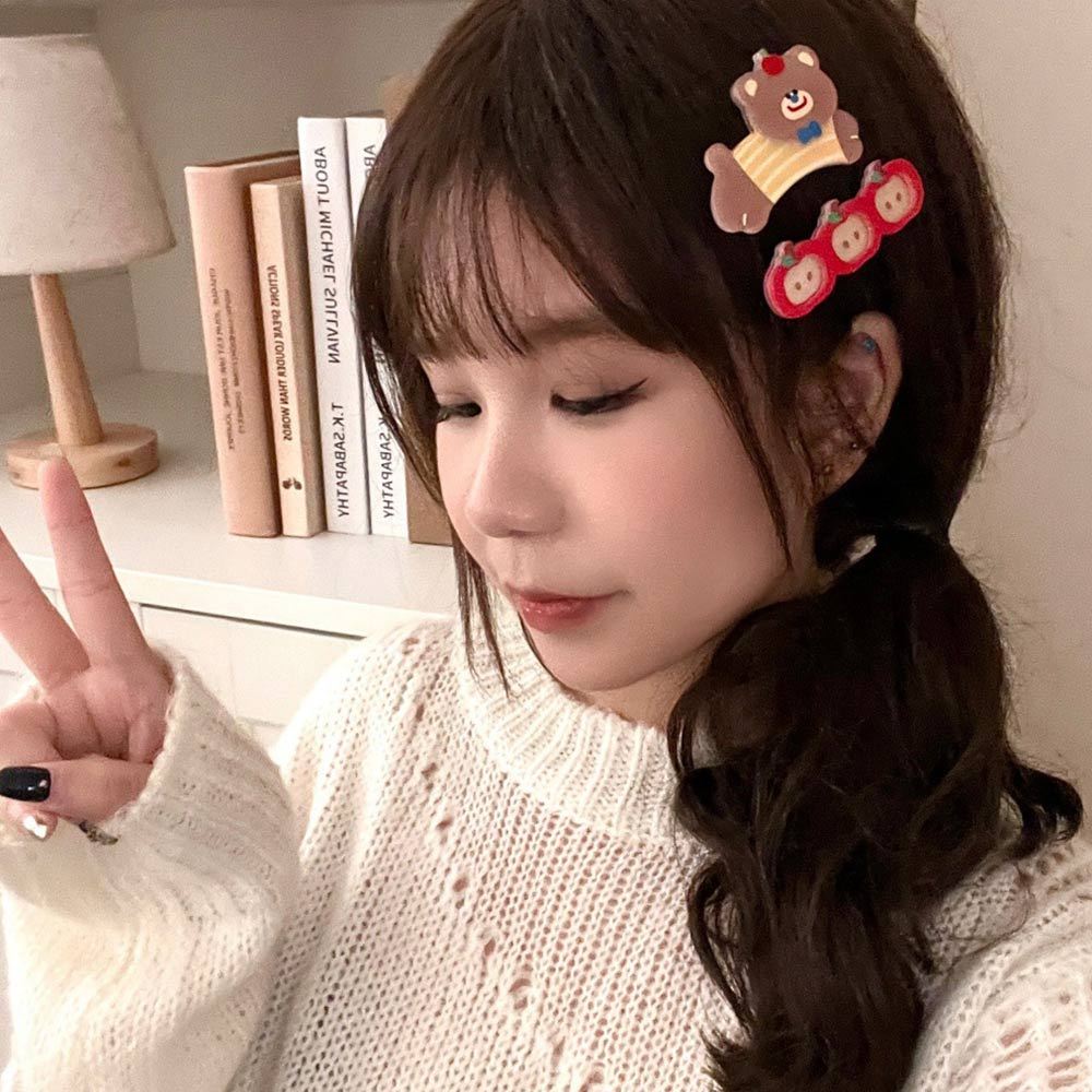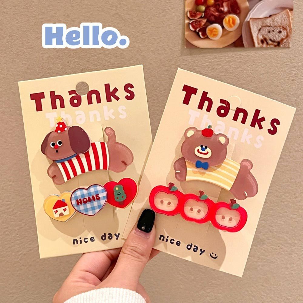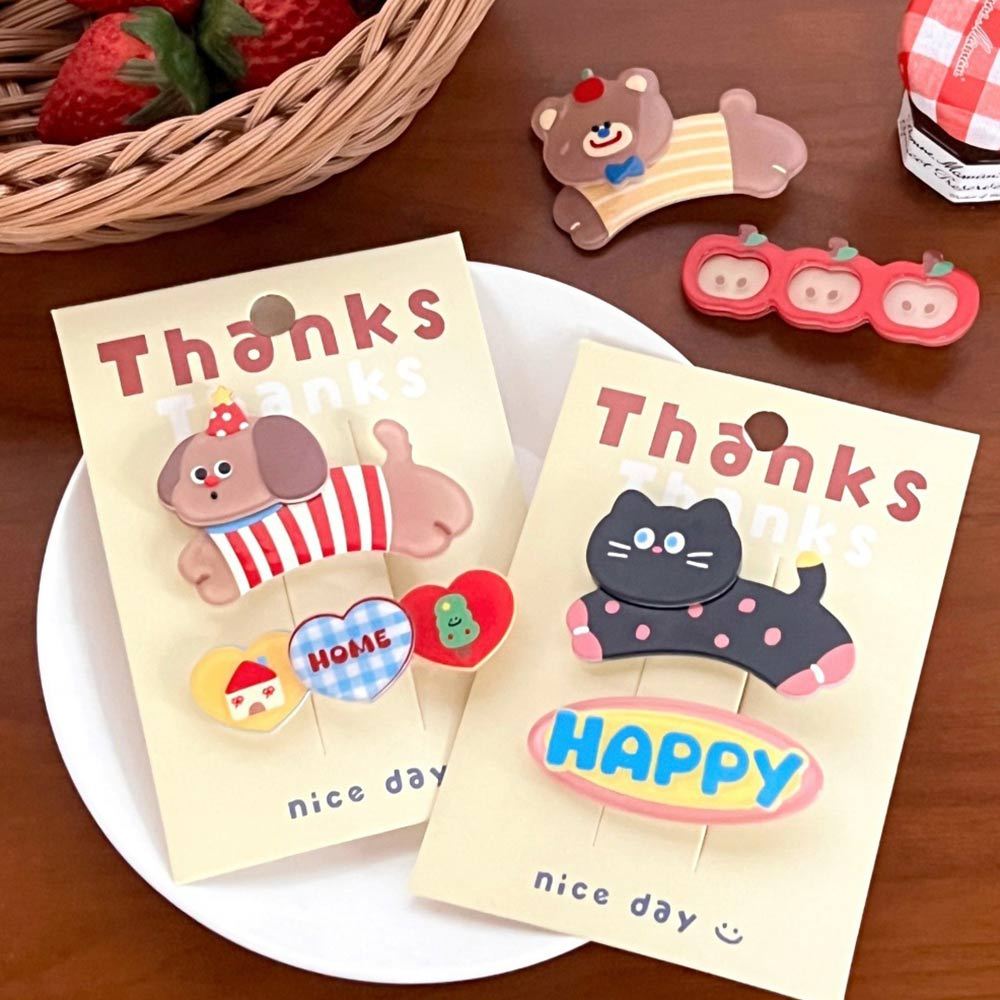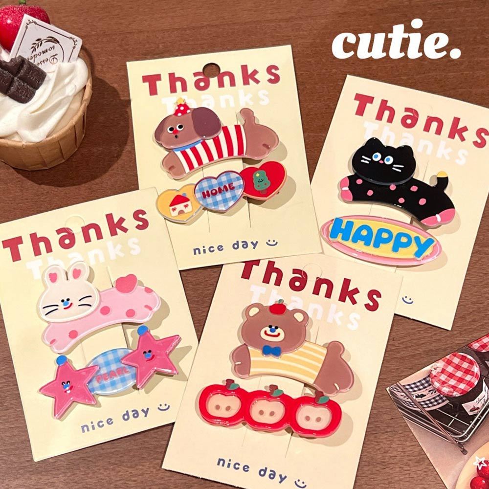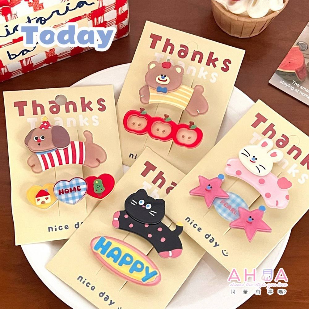 AHUA 阿華有事嗎 跳躍卡通動物髮夾2入組 E0136 韓系可愛 百搭 少女 髮夾 髮飾 配件粉色愛心兔|蘋果小熊|點點小黑貓|紅條紋小狗Hair Clips & Hair PinsAHUA 韓國襪子品牌旗艦店