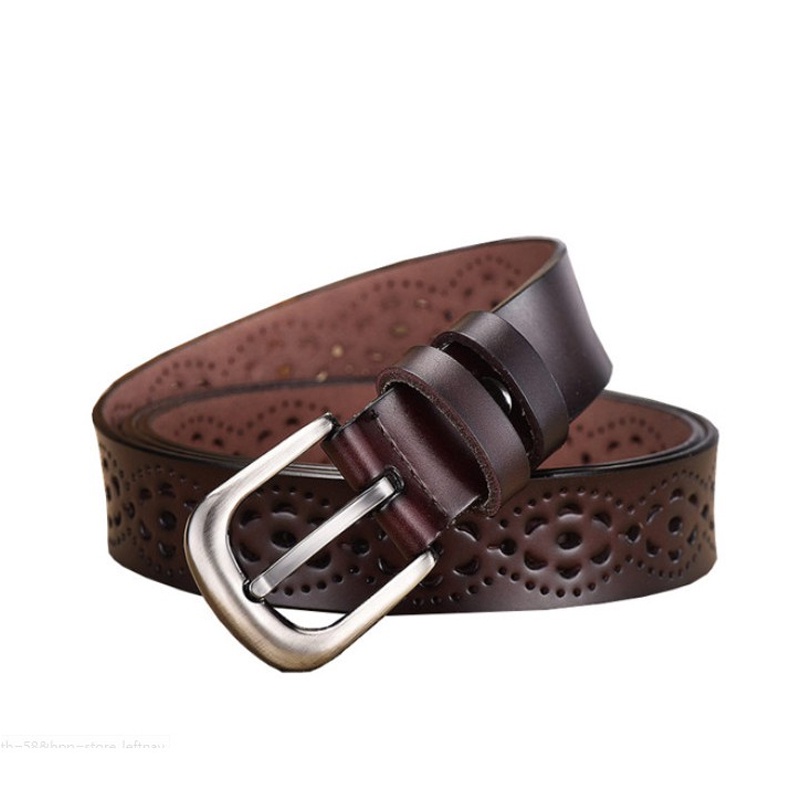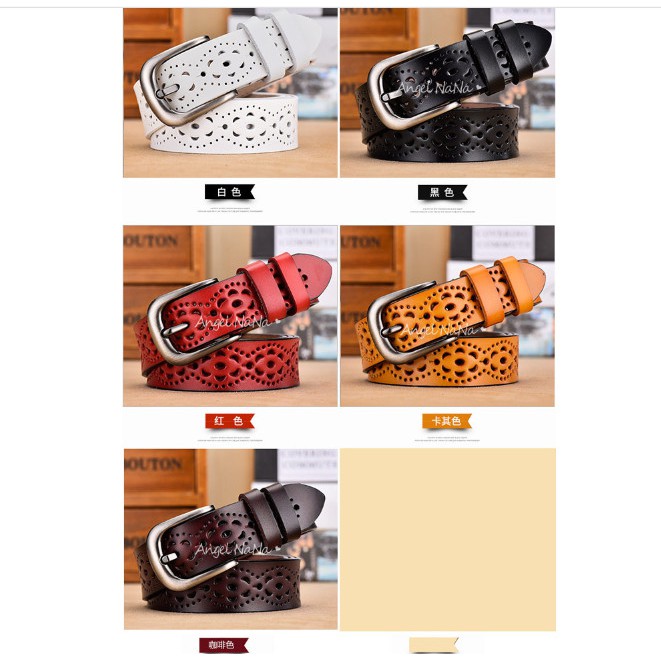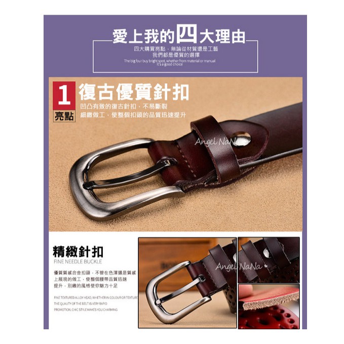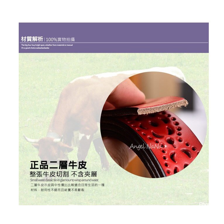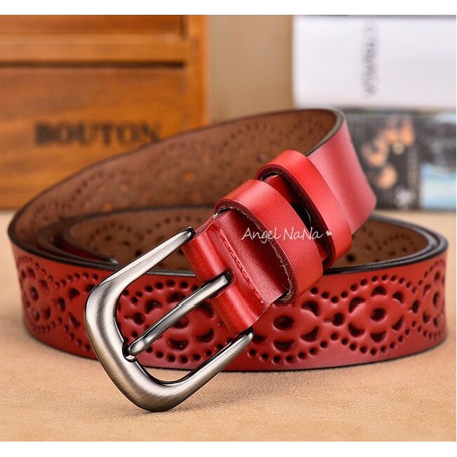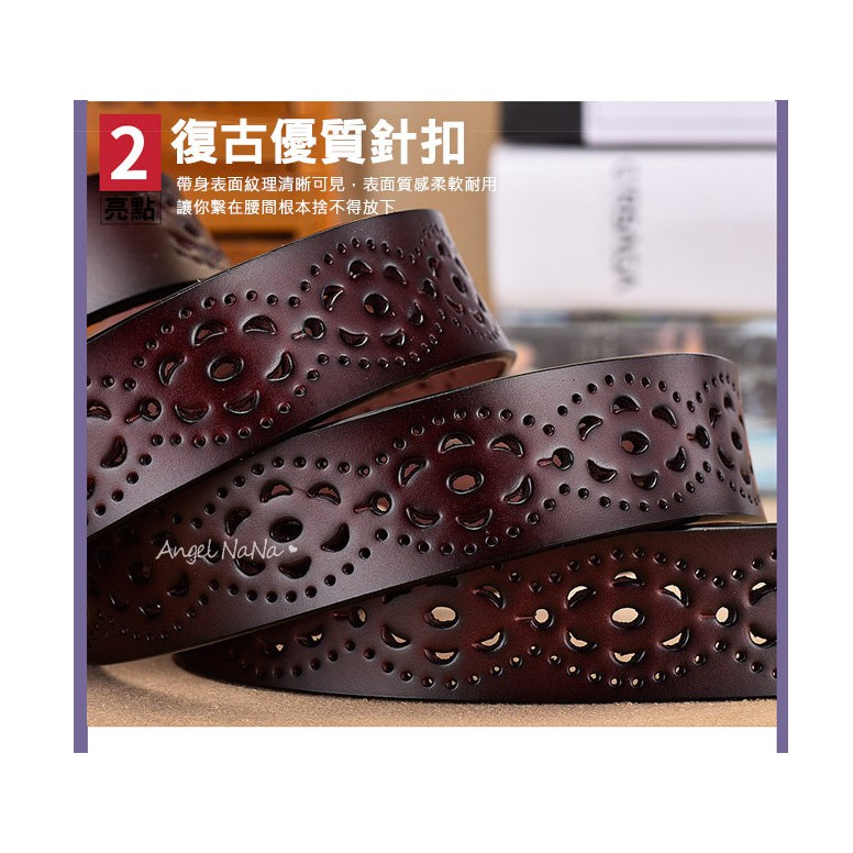 【AngelNaNa】真皮牛皮帶-寬2.8CM簍空花紋百搭顯瘦超軟Q女士針扣腰帶褲帶皮帶女裝服飾配件 (SPA0005)卡其|白色|紅色|黑色|咖啡AngelNaNa官方旗艦店