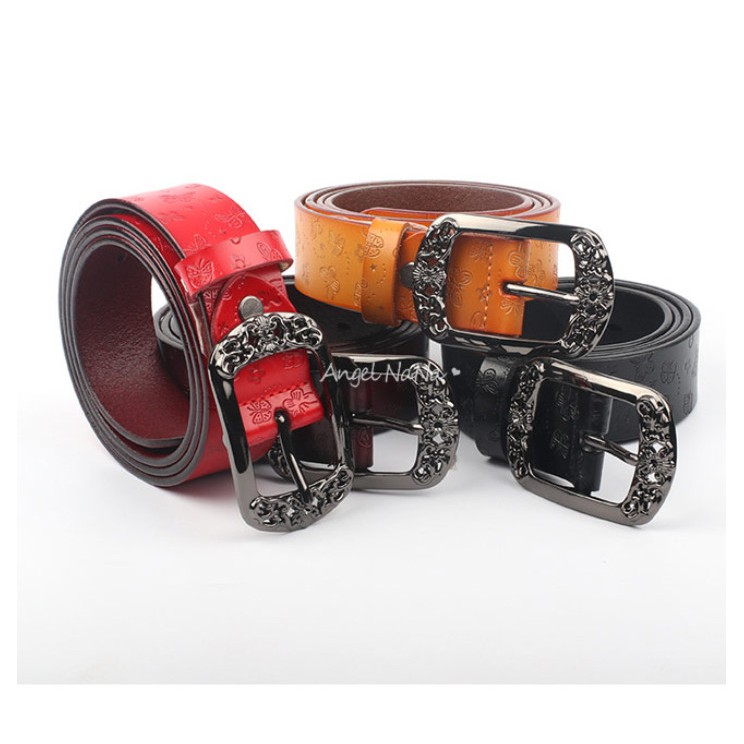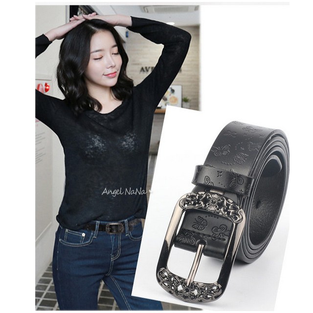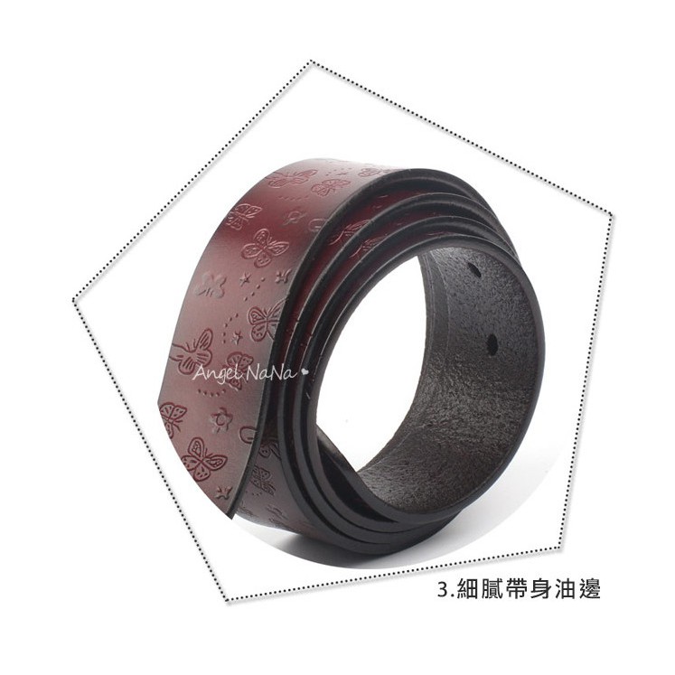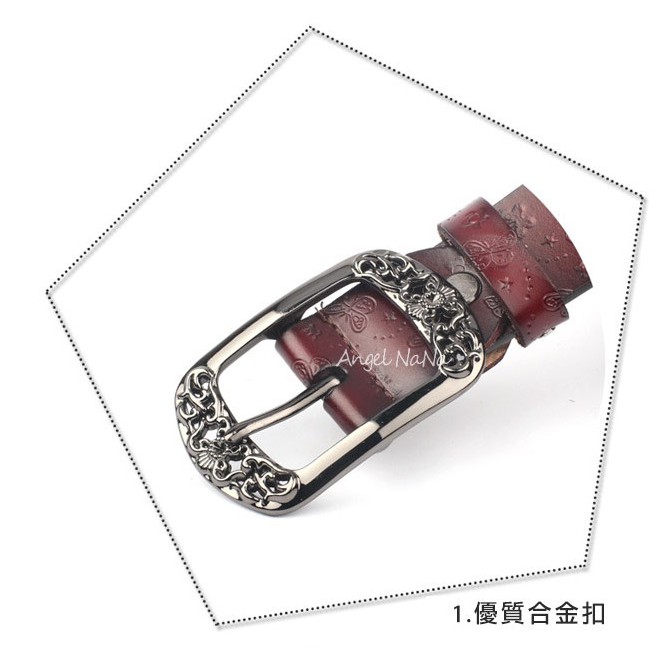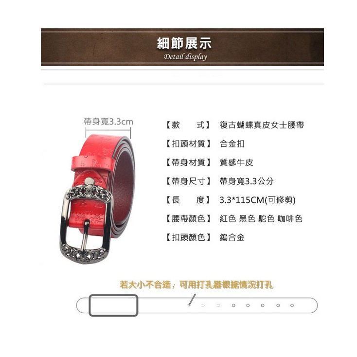 【AngelNaNa】真皮牛皮帶-寬3.3CM復古蝴蝶壓花百搭顯瘦超軟Q女士針扣腰帶褲帶皮帶女裝服飾 (SPA0007)黑色|紅色|駝色|咖啡AngelNaNa官方旗艦店