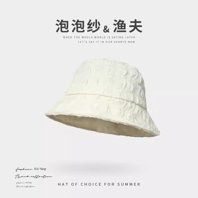 BAi白媽媽 泡泡紗漁夫帽/防曬帽 遮陽帽-【356137】米白(01)|黑(02)BAi白媽媽 品牌旗艦店
