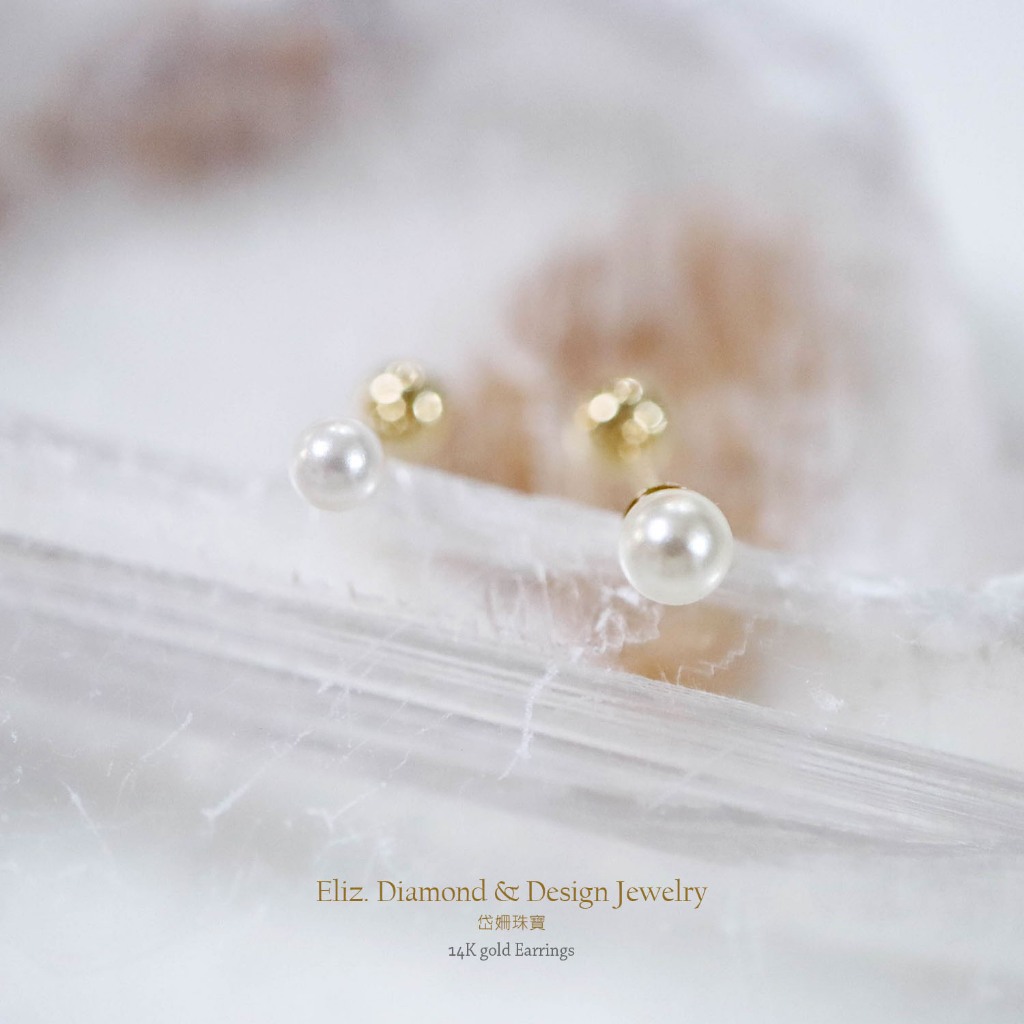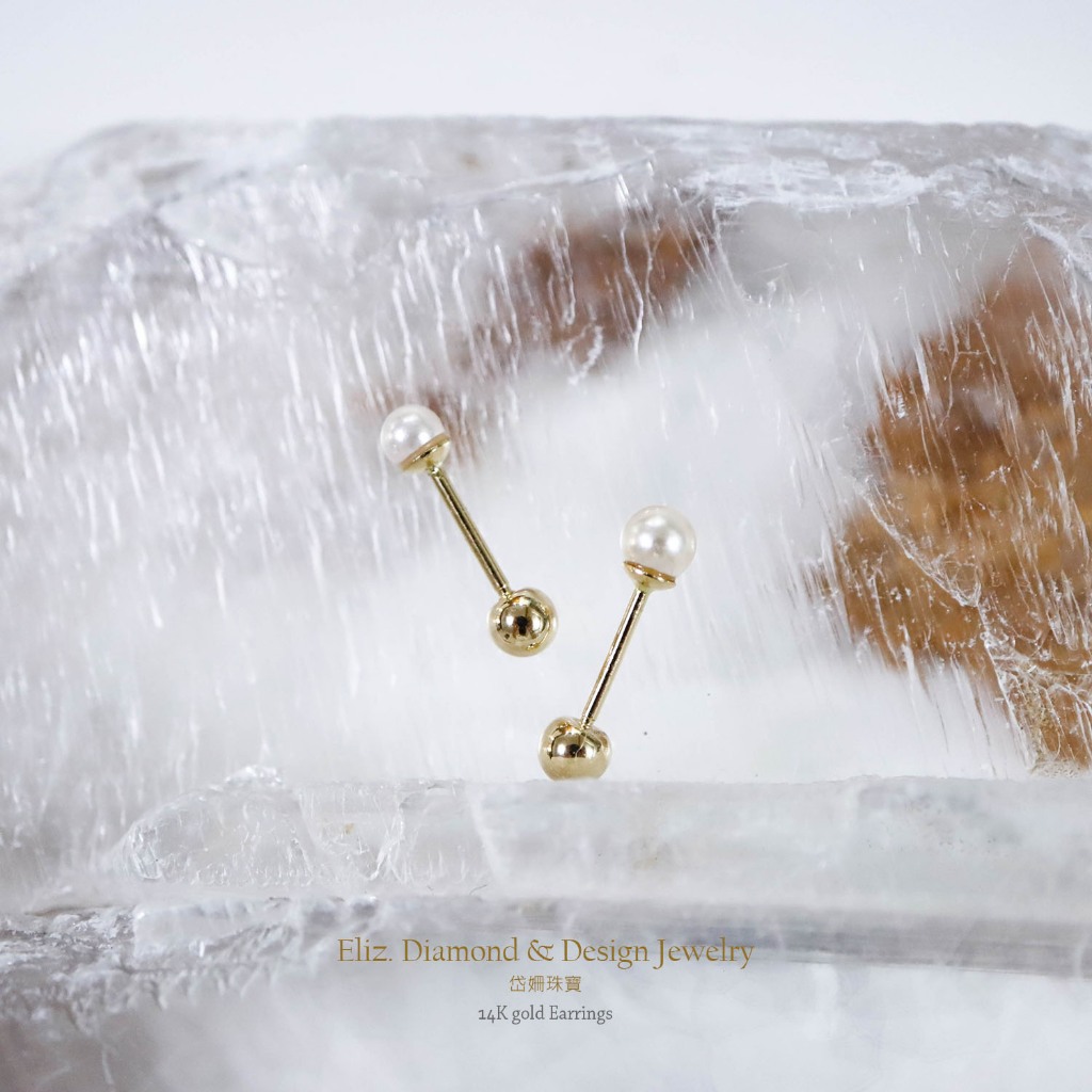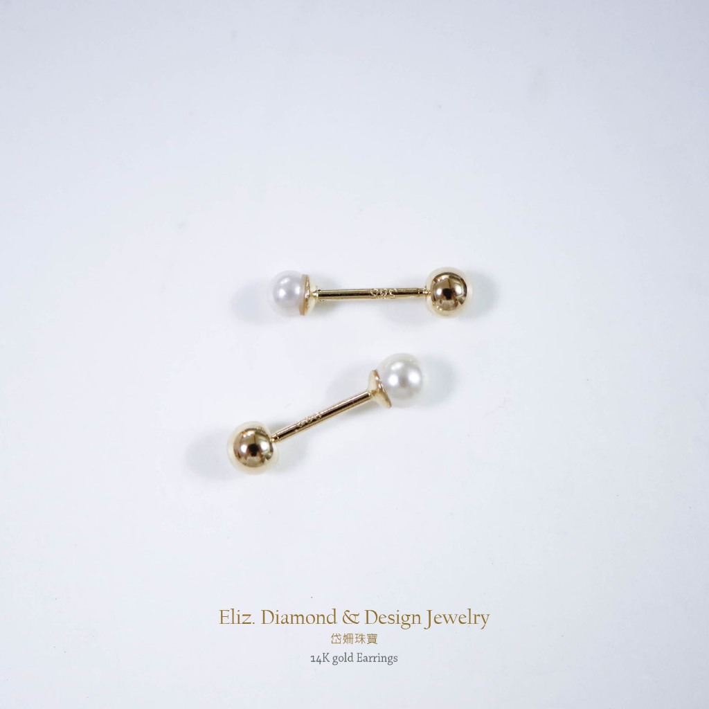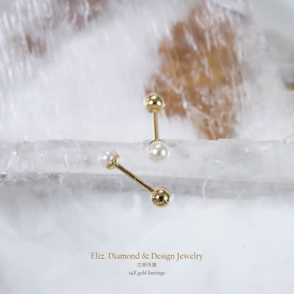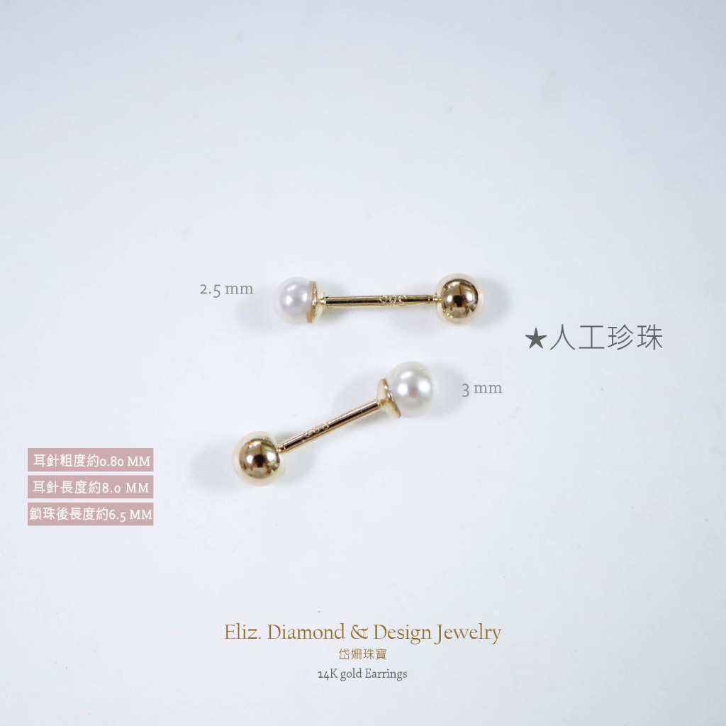 【岱姍珠寶】 14K 珍珠 鎖珠 黃K金 玫瑰金 耳環 耳針 K金耳環 鎖珠 鎖珠耳束 轉珠 耳骨 佩戴洗澡人工珍珠約2.5MM,單支販售│14K黃K金|人工珍珠約3.0MM,單支販售│14K黃K金■ 岱姍珠寶