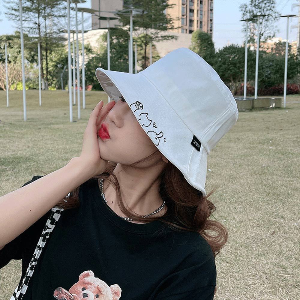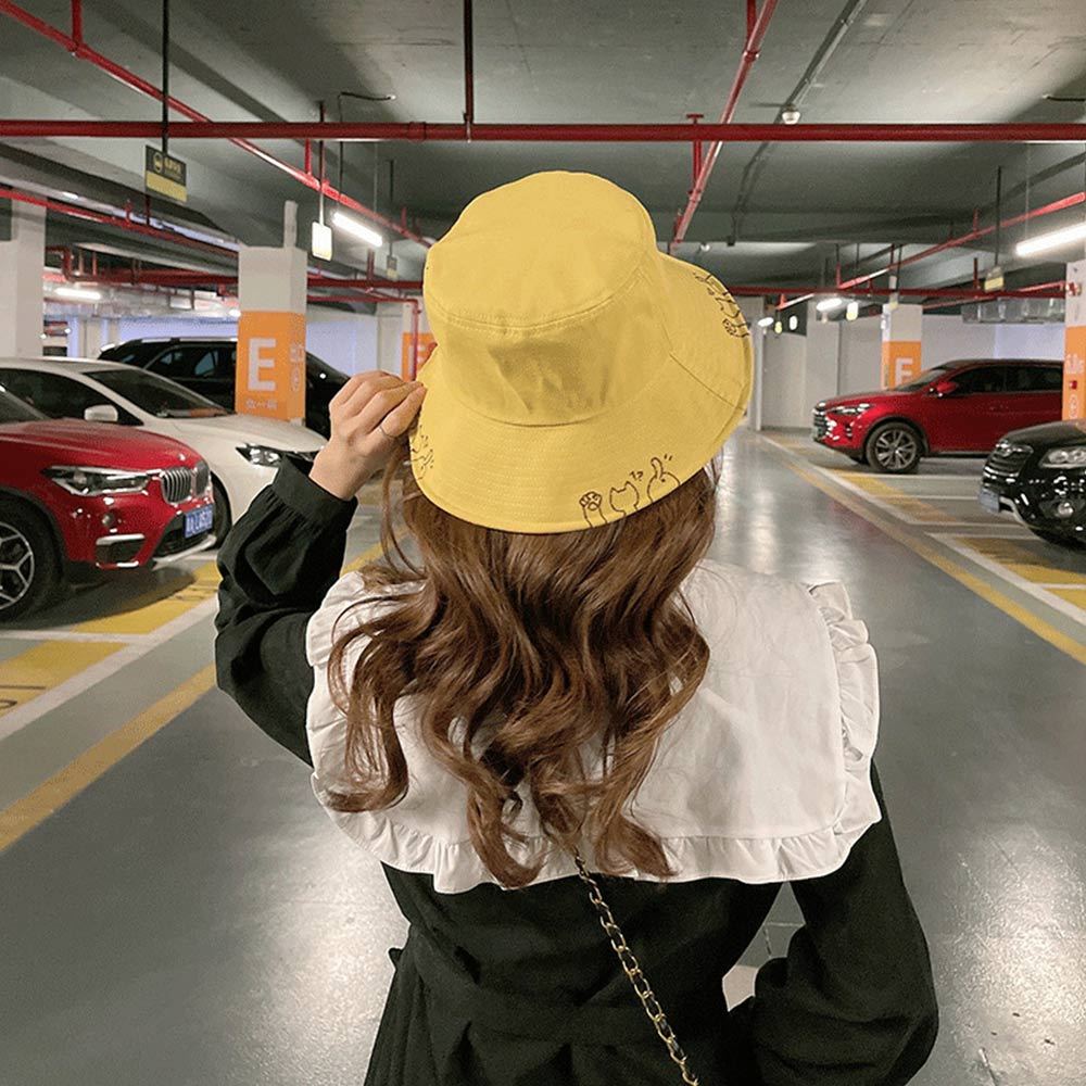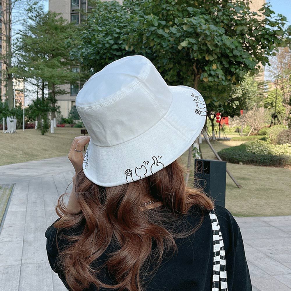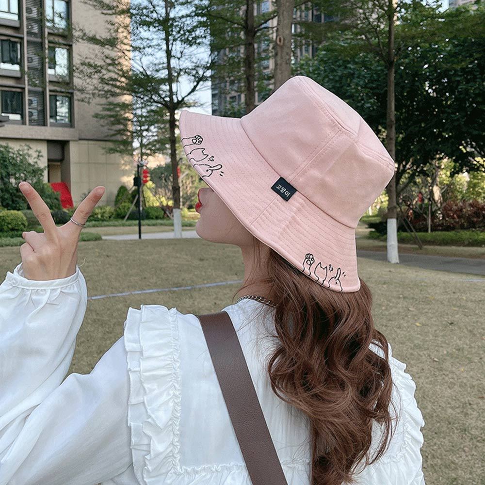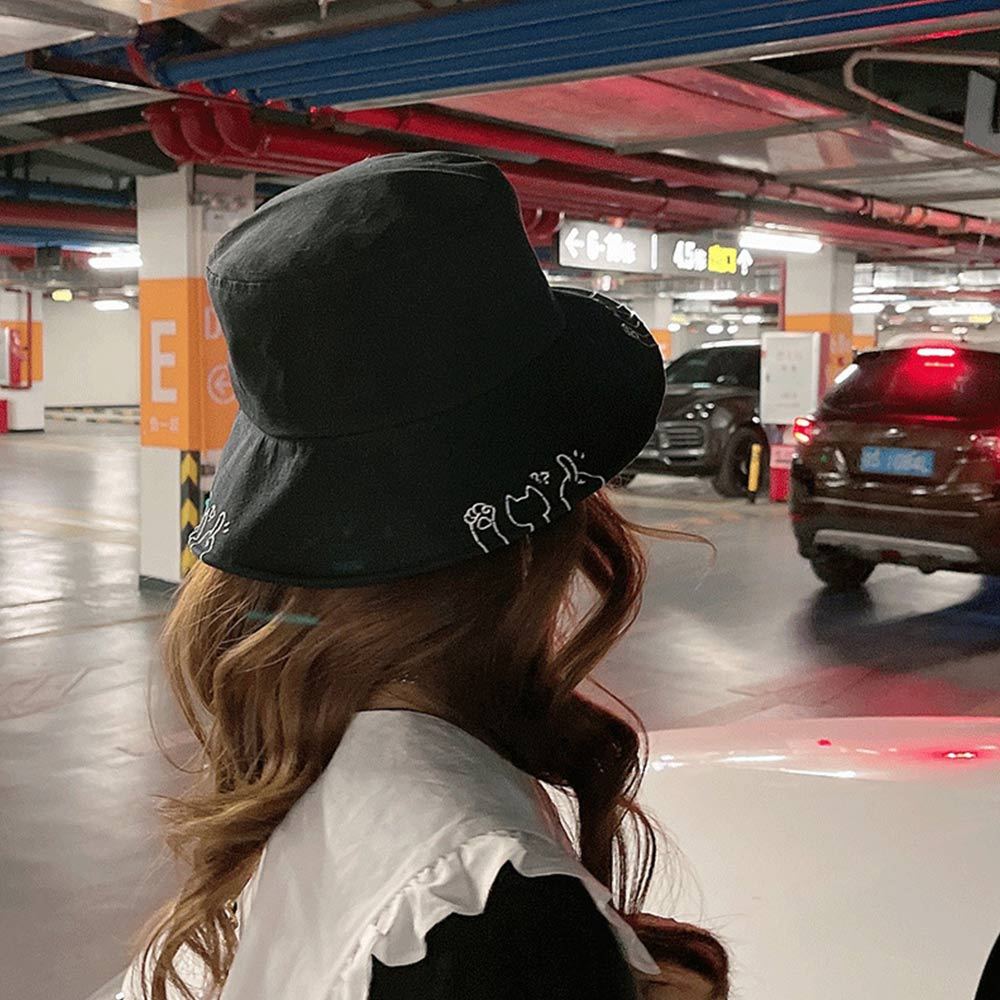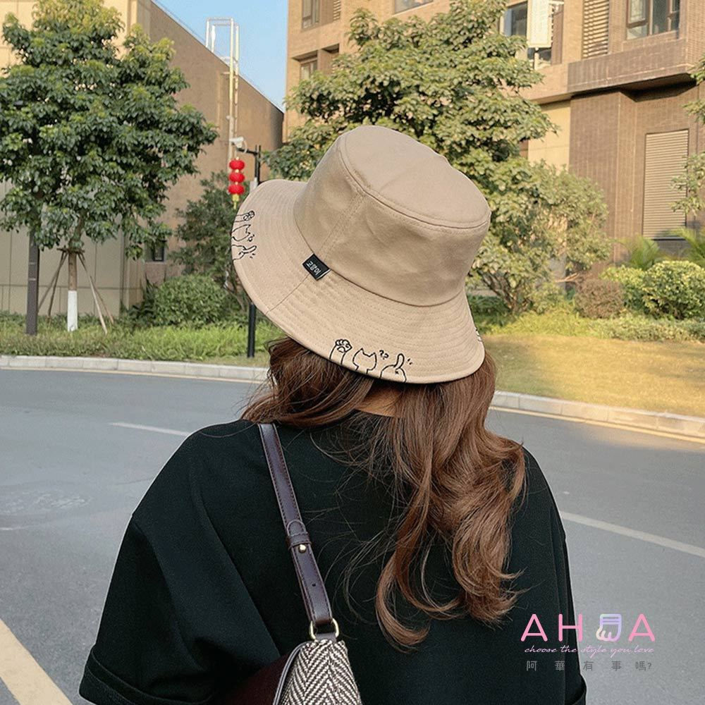 AHUA阿華有事嗎 貓咪鏤空漁夫帽 H0064 簡約 百搭基本款帽子 漁夫帽 遮陽帽粉底|黑底|卡其底|米底|白底|黃底AHUA 韓國襪子品牌旗艦店