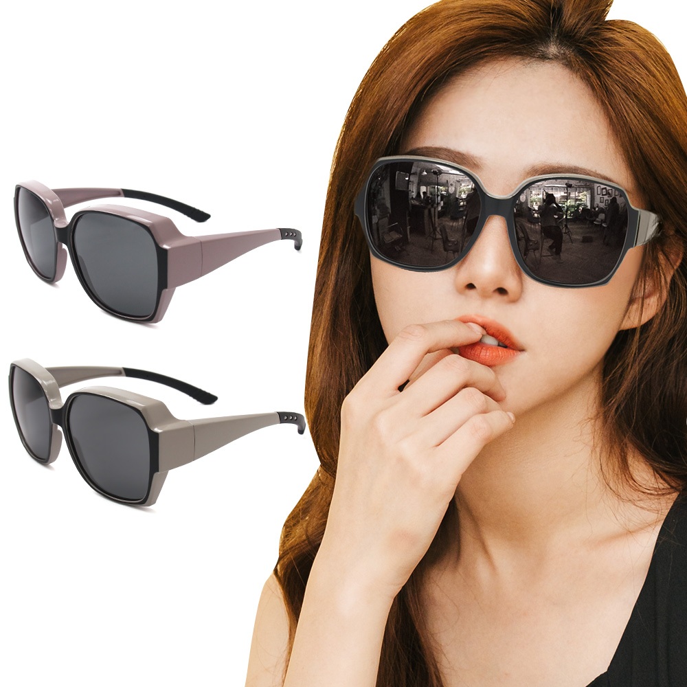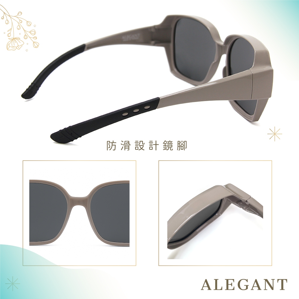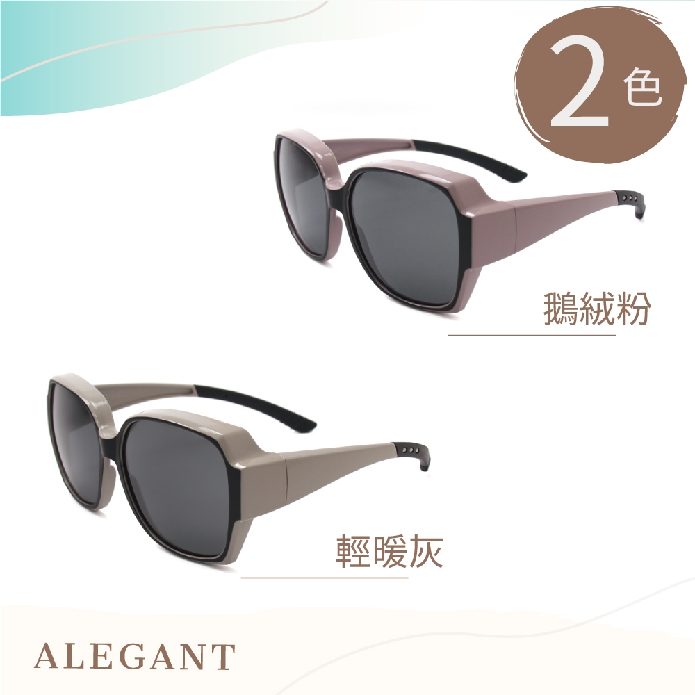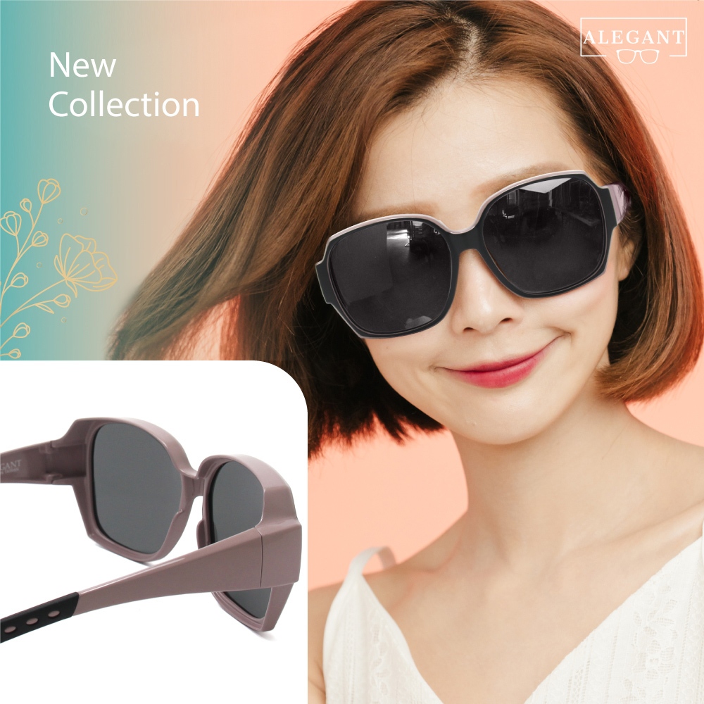 ALEGANT精緻時尚加大方框全罩式防滑彈力鏡腳寶麗來偏光墨鏡│外掛式UV400太陽眼鏡│包覆套鏡│車用太陽眼鏡│鵝絨粉|輕暖灰SunglassesALEGANT時尚眼鏡墨鏡