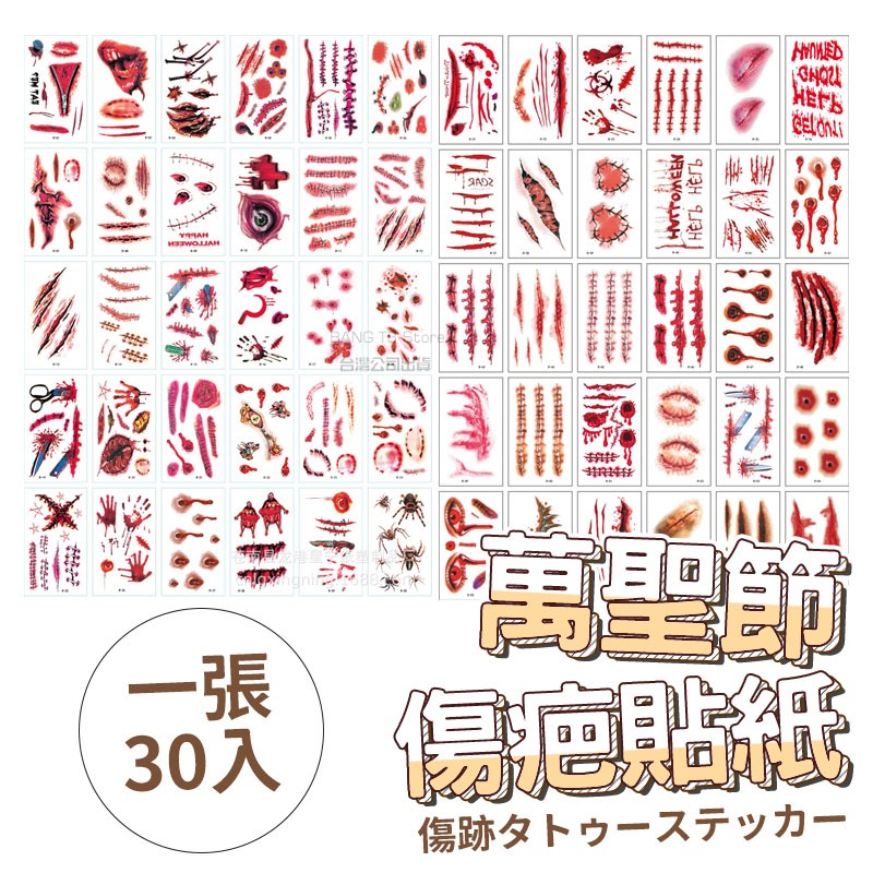 30種傷口紋身貼紙 有影片 萬聖節 台灣出貨 疤痕貼紙 紋身貼紙 傷妝 受傷貼紙 萬聖節紋身貼紙 貼紙 傷疤【HB23】