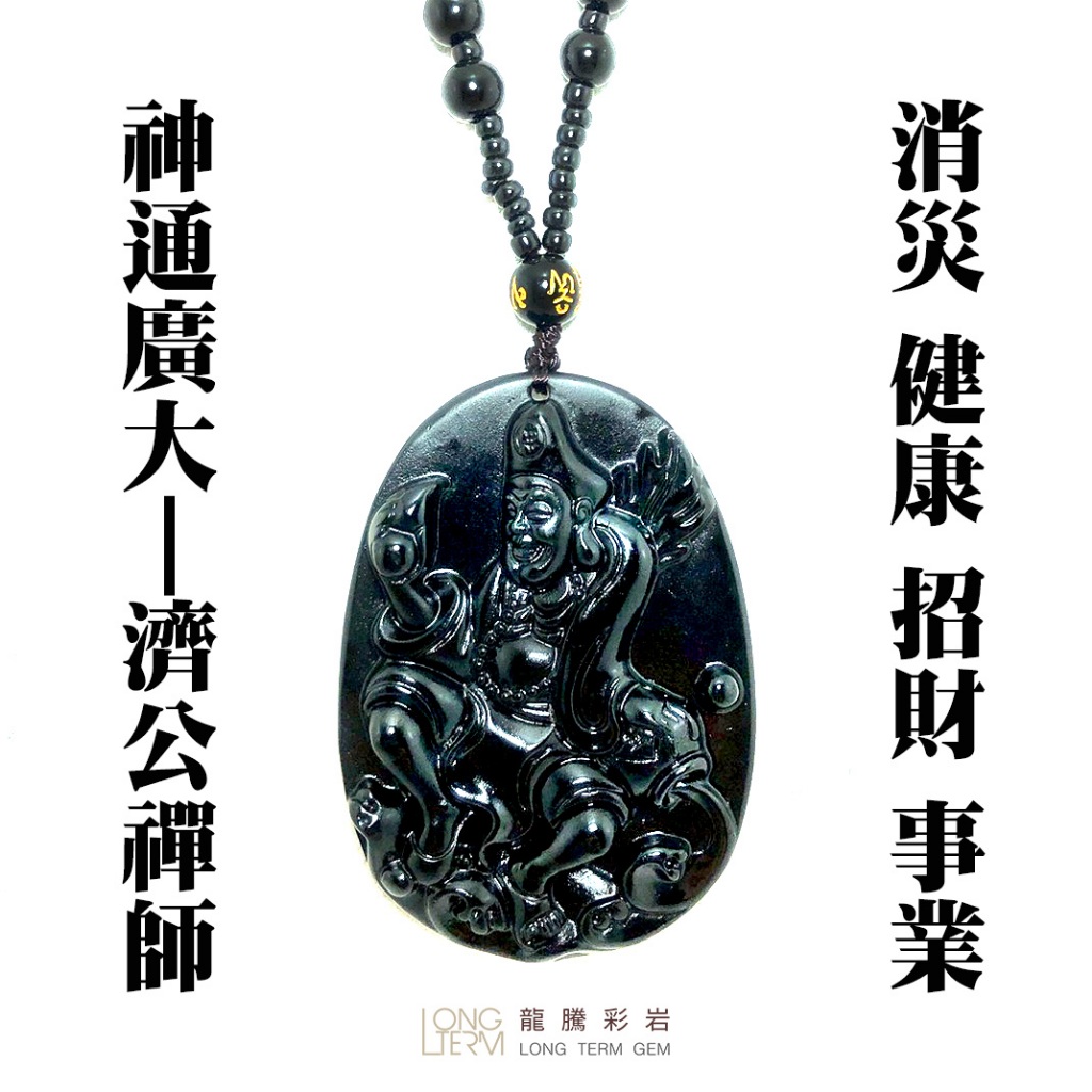 【龍騰彩岩】< 神通廣大 黑曜石 濟公 濟公活佛 降龍羅漢 項鍊 > 保平安 聖物 護身符 消災解厄 保佑健康 財運亨通台灣現貨-濟公禪師《龍騰彩岩》台灣水晶礦石首選第一品牌