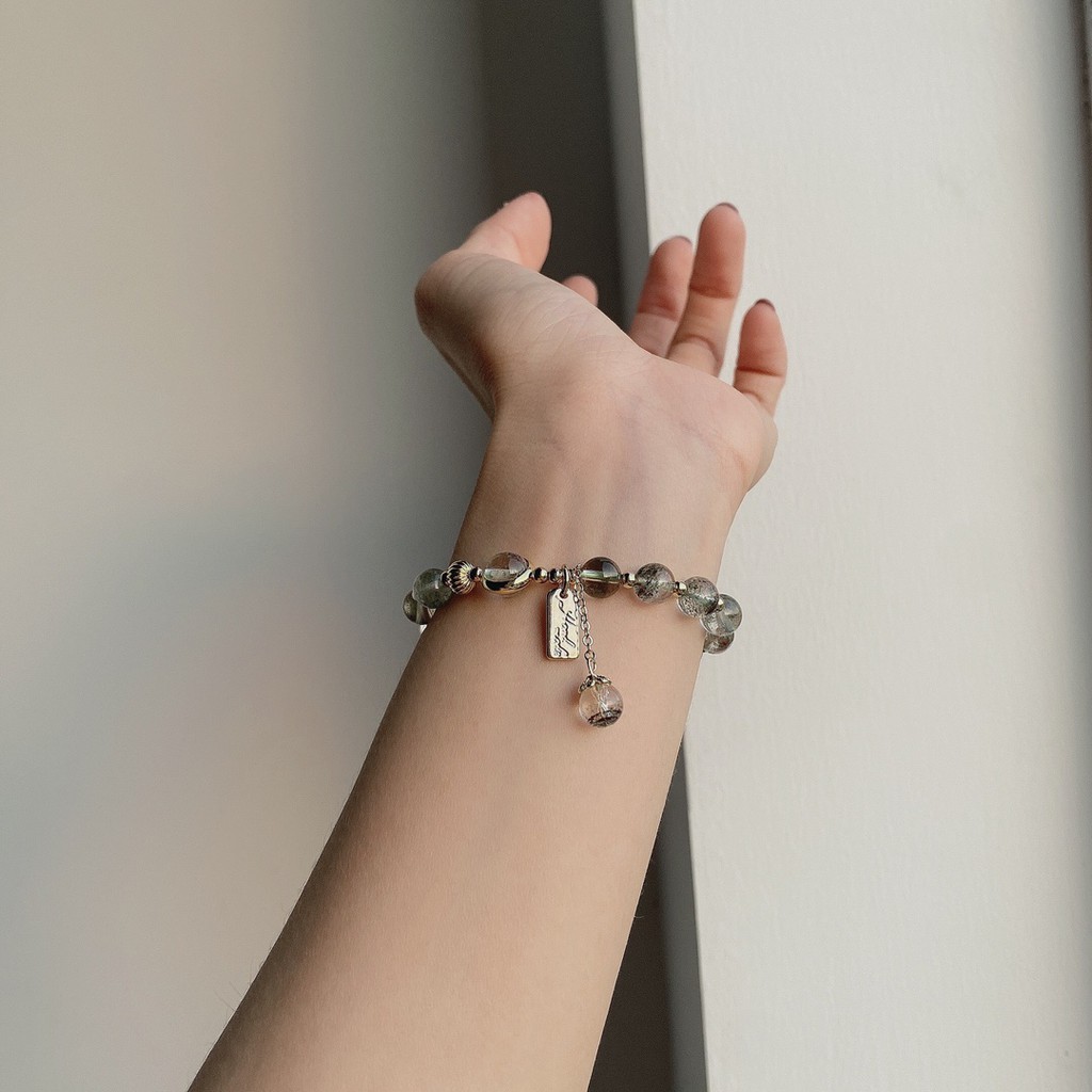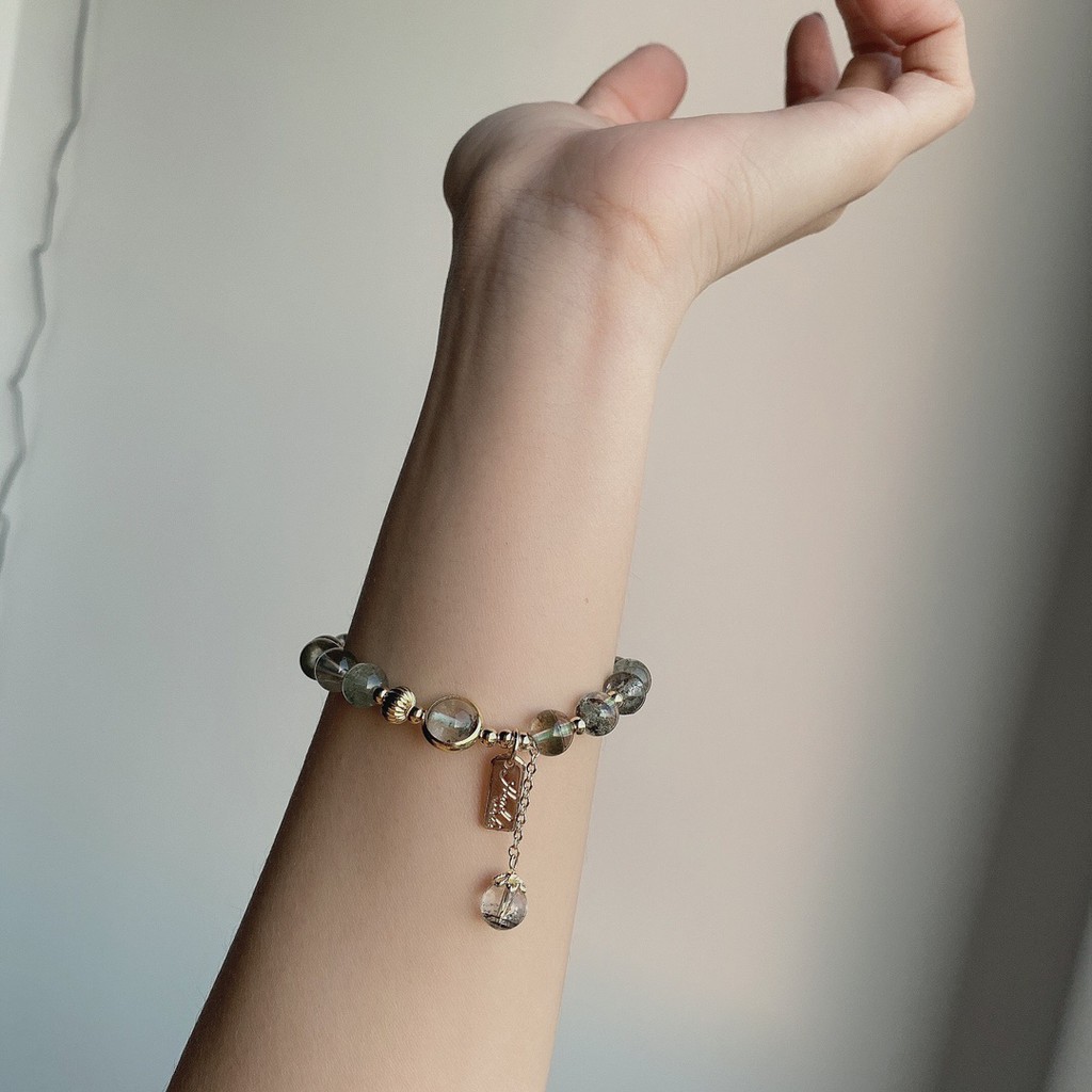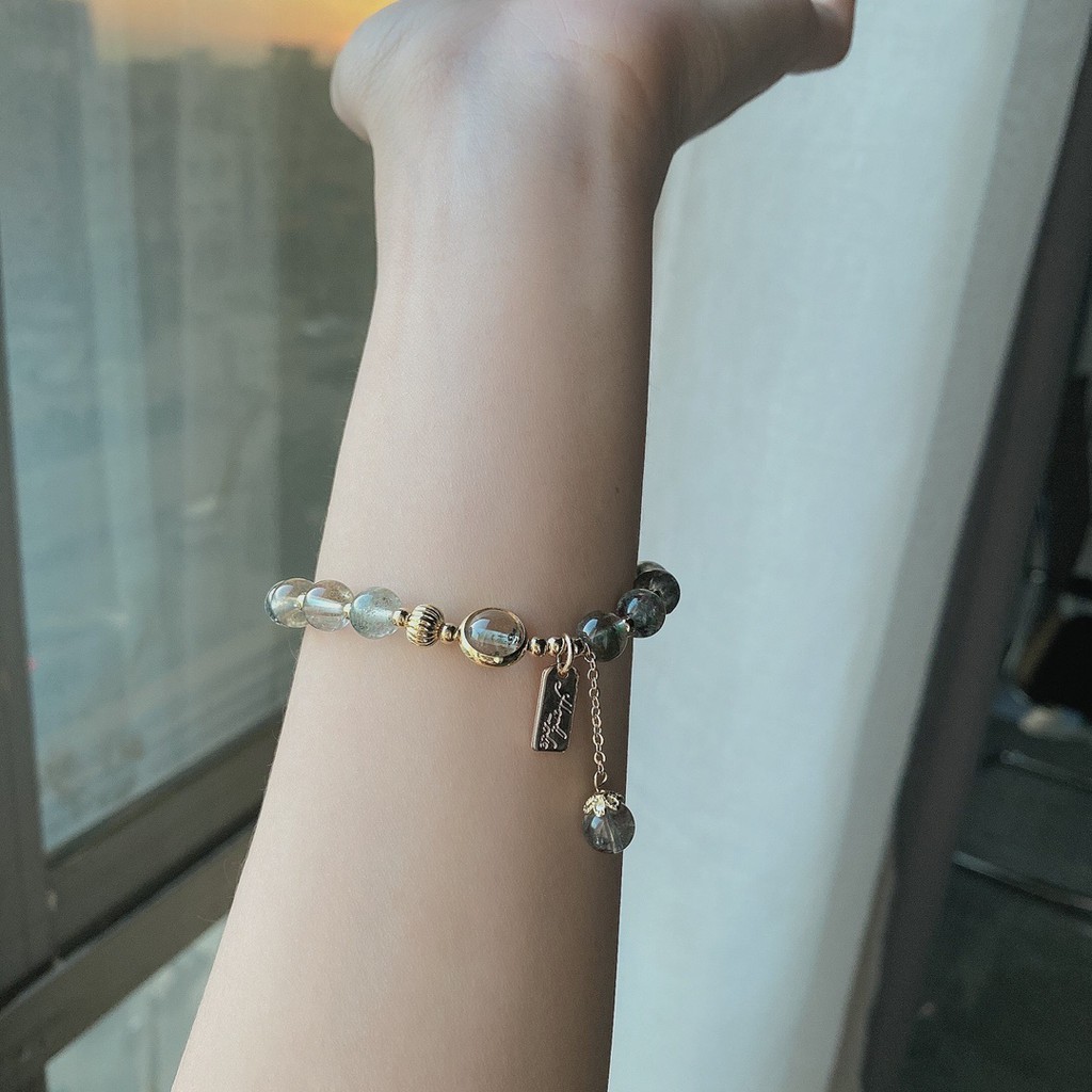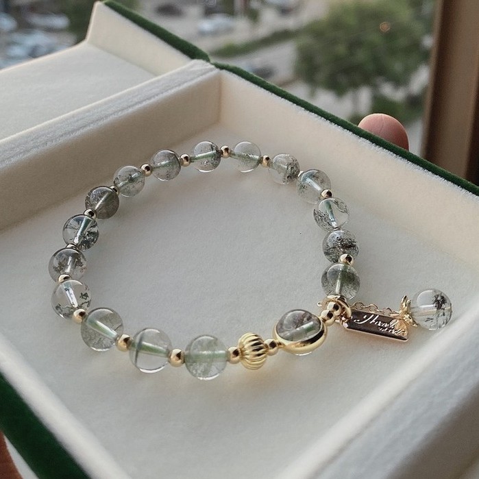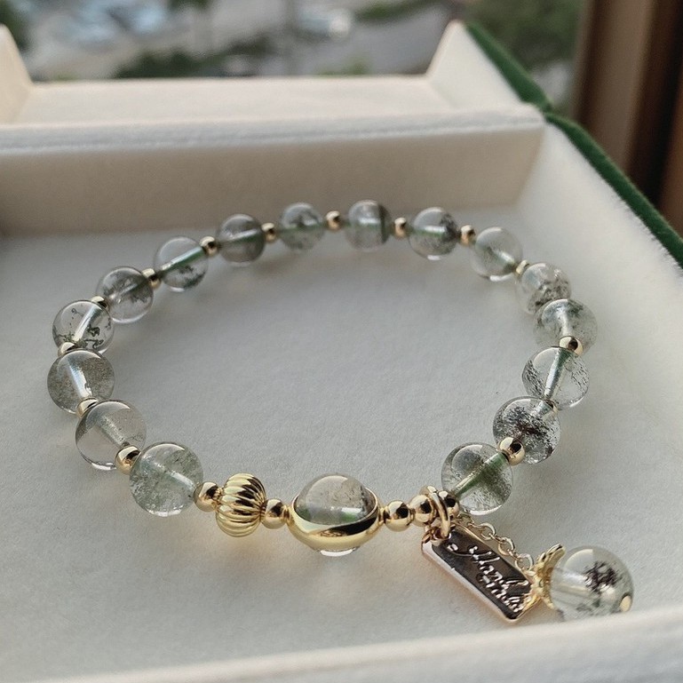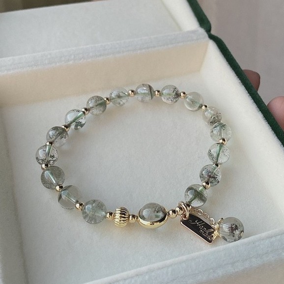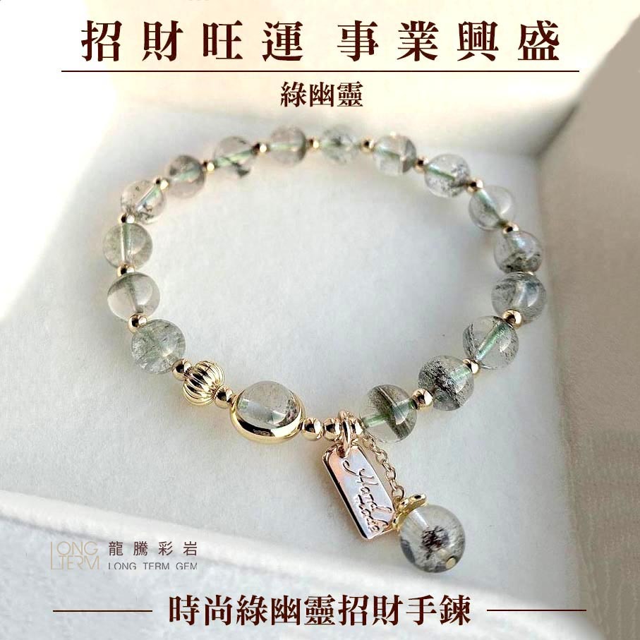 【龍騰彩岩】< 招財開運 抗過敏 14K注金 綠幽靈 手鍊 手珠 > 財運旺旺來 氣場好起來 人見人人愛 貴人自己來9-10mm—如圖款(手圍請洽客服)|客製款《龍騰彩岩》台灣水晶礦石首選第一品牌