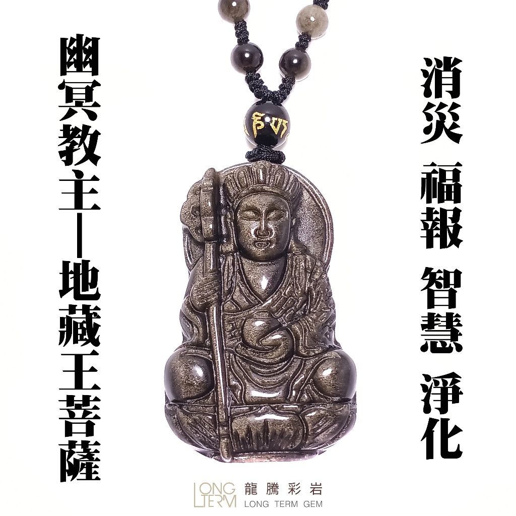 【龍騰彩岩】< 淨化加持 金曜石 黑曜石 地藏王 菩薩 項鍊 >地藏菩薩 避邪 聖物 護身符 避邪擋煞 消災解厄 保平安台灣現貨-黑曜石款|台灣現貨-金曜石款《龍騰彩岩》台灣水晶礦石首選第一品牌