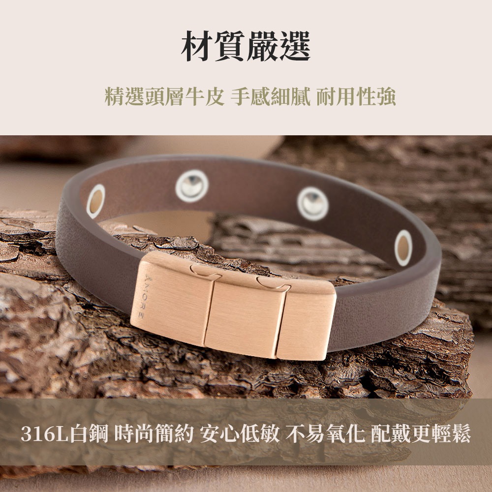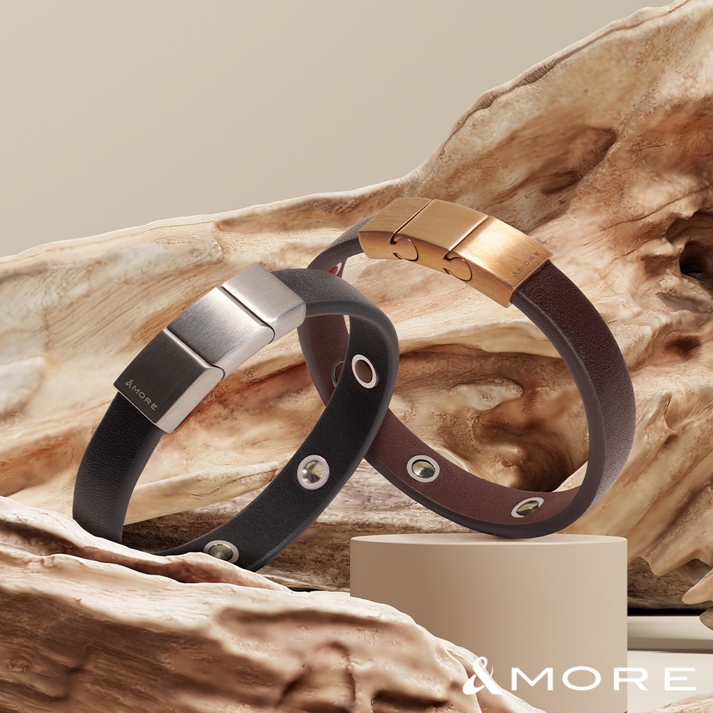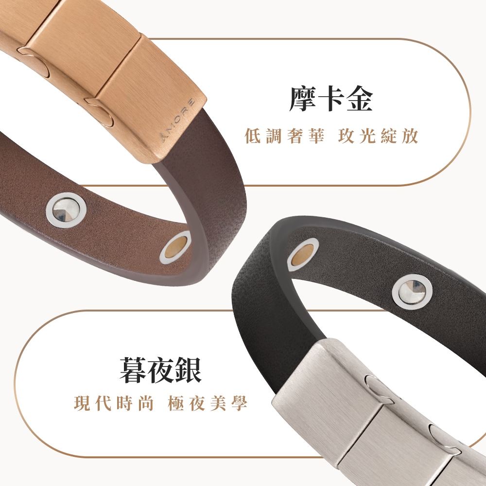 &MORE愛迪莫 Urban 皮革健康鍺手環 (簡約款)摩卡金|暮夜銀&MORE愛迪莫鈦鍺