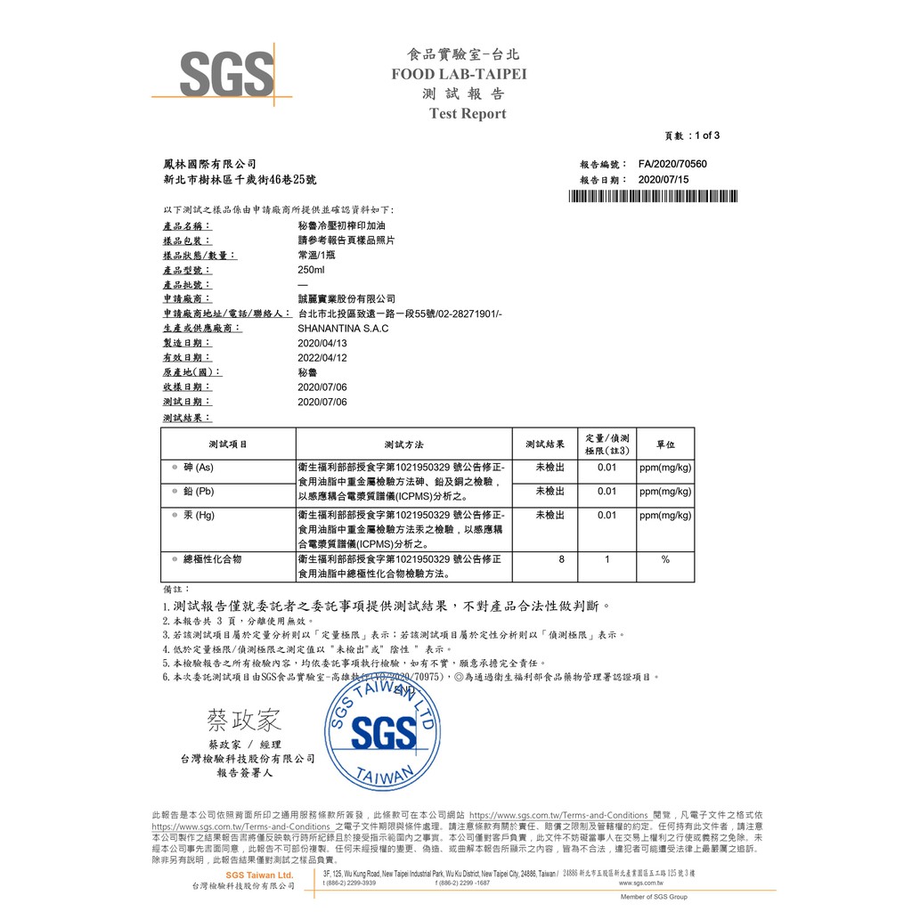 【誠麗】冷壓初榨秘魯進口100%印加果油 250ml 祕魯 星星果油 非台灣製 omega好油 SGS檢驗1瓶|5瓶Oil【誠麗莓果】