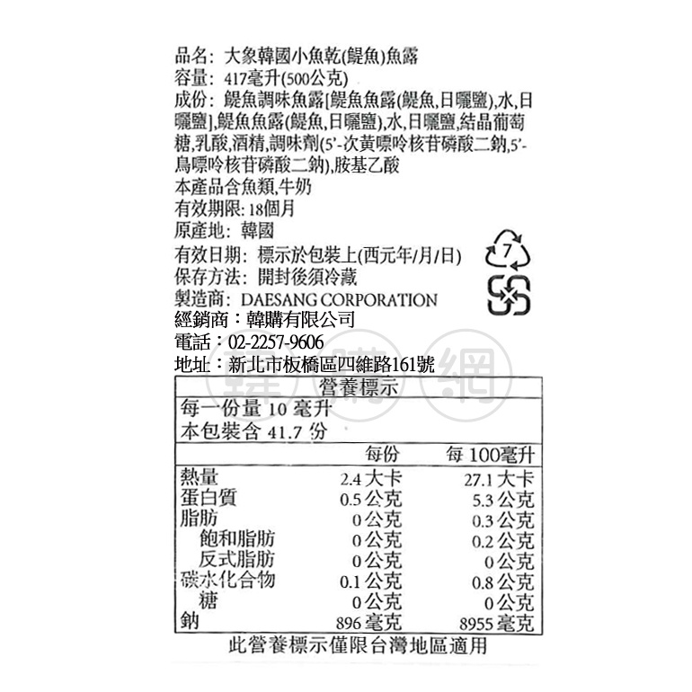 韓國DAESANG大象 小魚乾魚露500g(鯷魚露)【韓購網】韓國DAESANG大象 小魚乾魚露500g(鯷魚露)【韓購網】Seasonings & Condiments《韓購網》KOREA SHOP韓國專賣店