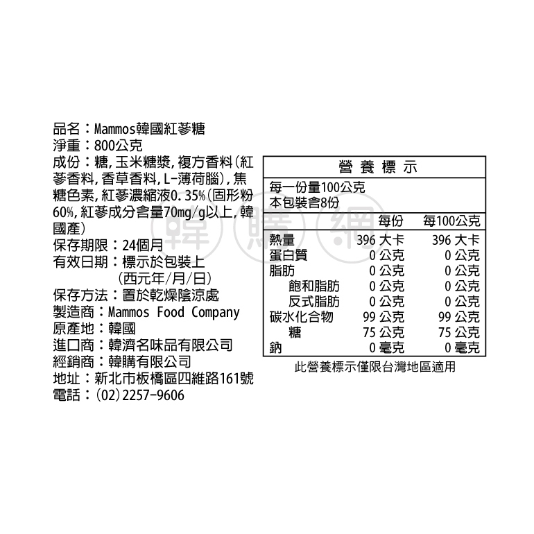 韓國Mammos 紅蔘糖800g【韓購網】韓國Mammos 紅蔘糖800g【韓購網】Sweets & Candy《韓購網》KOREA SHOP韓國專賣店
