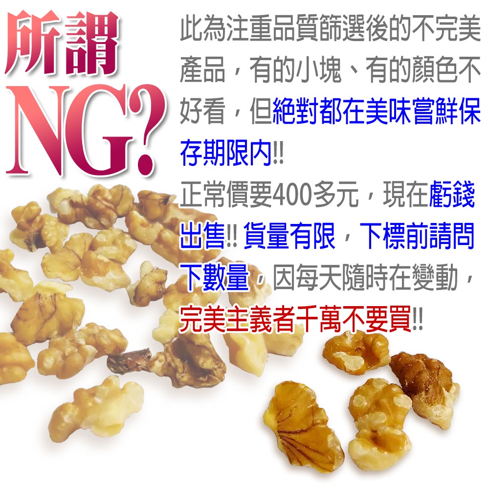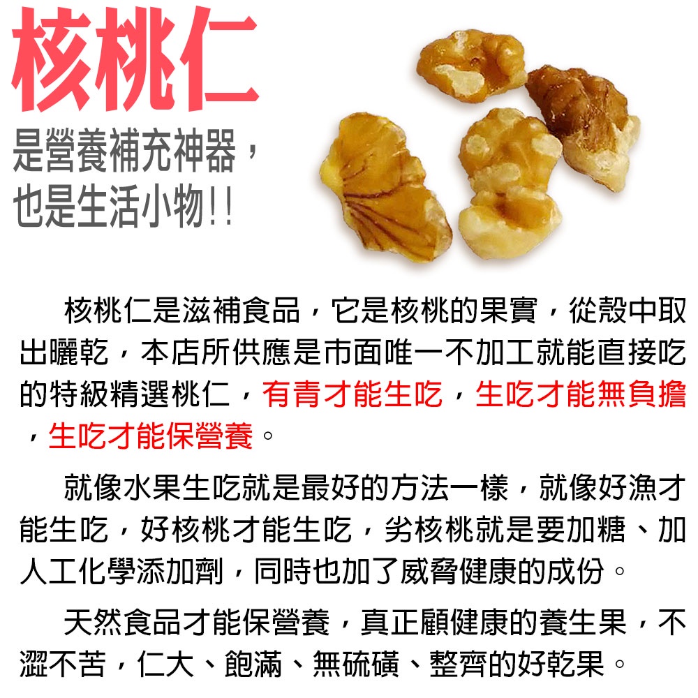 【蔘大王】1/6片核桃仁/NG核桃仁/口感不NG《W2021》【蔘大王】1/6片核桃仁/NG核桃仁/口感不NG《W2021》Nuts【蔘大王】鮮人蔘藥膳食材