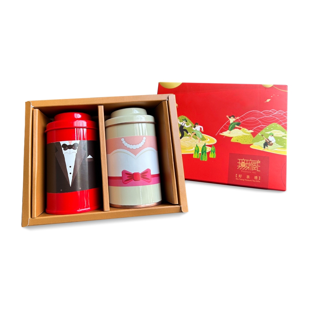 無藏【婚禮小物】無藏嚴製_開花茶綜合3顆高罐二入禮盒組-新郎新娘款(2罐/盒)茶葉禮盒