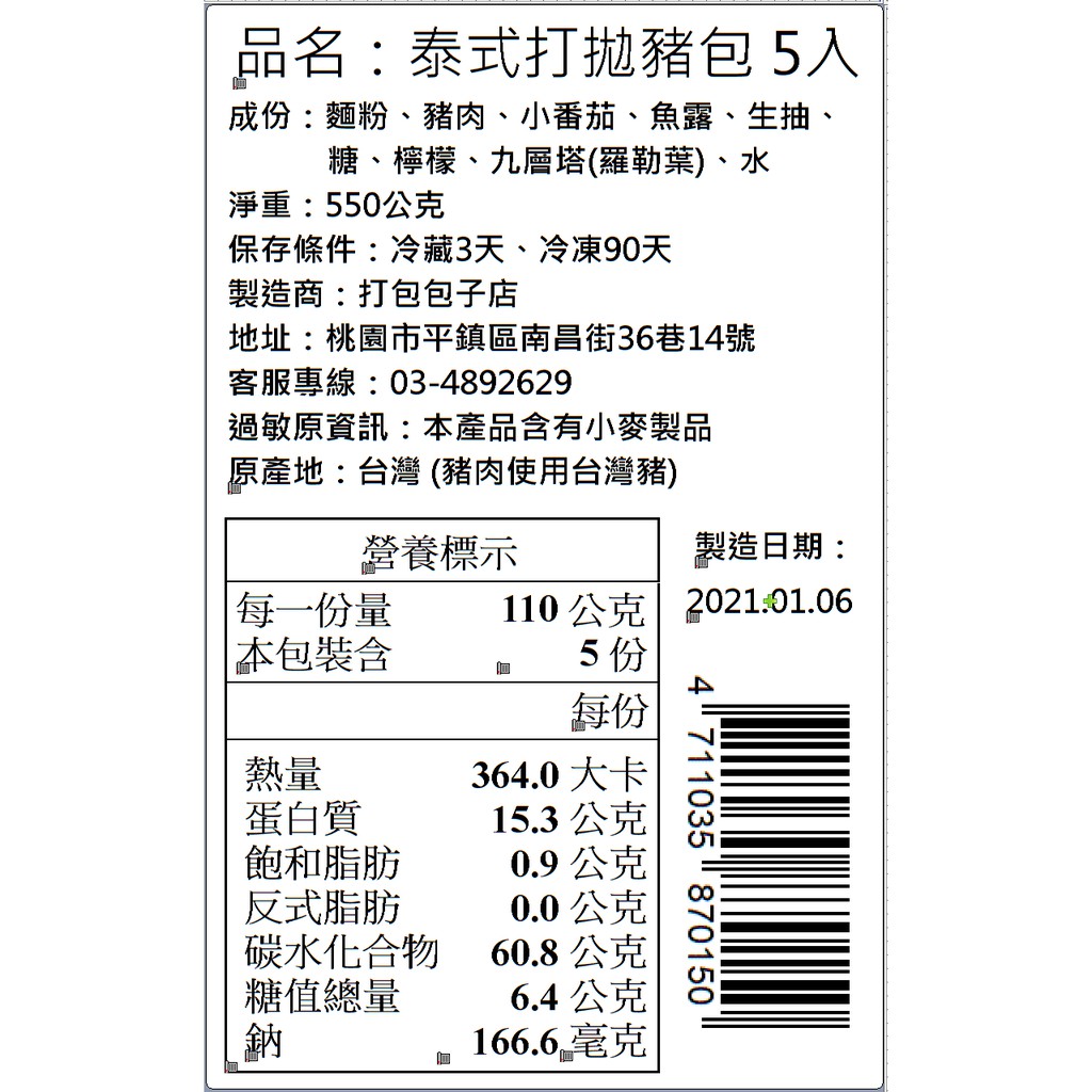 泰式打拋豬包(5入/袋)泰式打拋豬包(5入/袋)Cooked Food【打包DABAO】手作包子/網路人氣團購美食