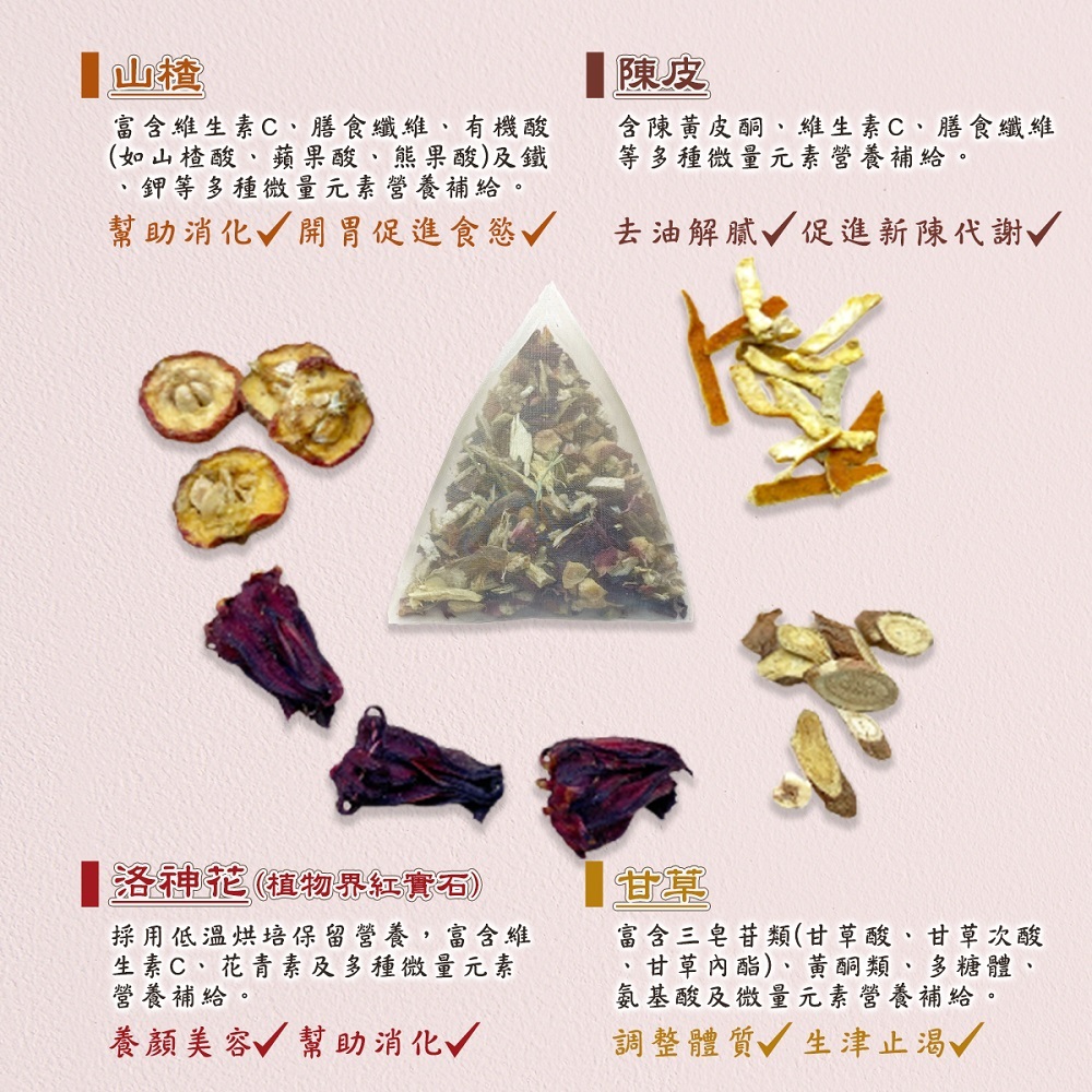 【蔘大王】山楂洛神消食茶 揮別油膩▪幫助消化▪增加飽足感▪無咖啡因▪草本茶包《HE16》【蔘大王】山楂洛神消食茶 揮別油膩▪幫助消化▪增加飽足感▪無咖啡因▪草本茶包《HE16》Tea & Tea Bags【蔘大王】鮮人蔘藥膳食材