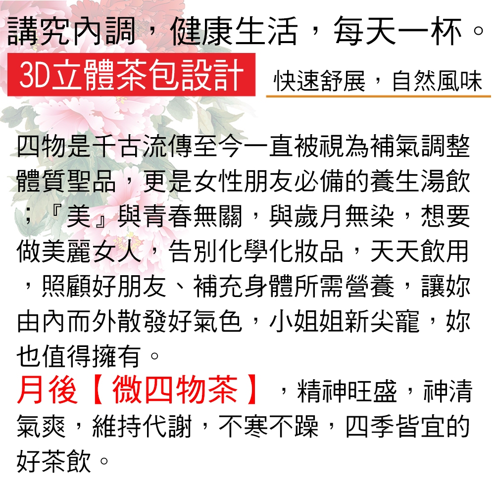 【蔘大王】月後微四物茶►10gX10入/組❗買5送1▪漢方茶包❗仙女養生調整體質▪養顏美容▪月月順▪無咖啡因❗三角茶包【蔘大王】月後微四物茶►10gX10入/組❗買5送1▪漢方茶包❗仙女養生調整體質▪養顏美容▪月月順▪無咖啡因❗三角茶包Tea & Tea Bags【蔘大王】鮮人蔘藥膳食材