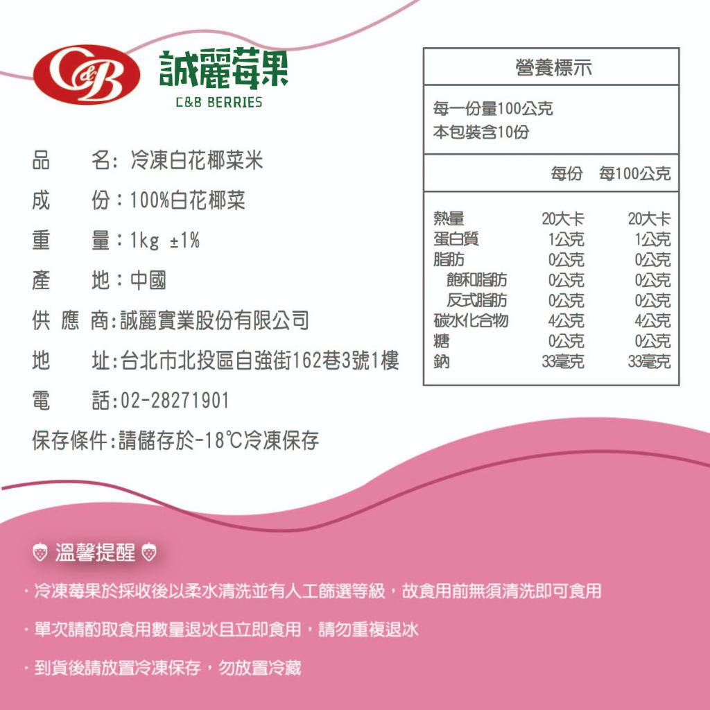 【誠麗莓果】促銷 IQF急速冷凍白花椰菜米1公斤裝 5包 10包 20包下單區(低醣飲食、健身餐)10包|20包|5包|提醒用勿下單超取限重9公斤超過請選擇宅配Vegetables【誠麗莓果】