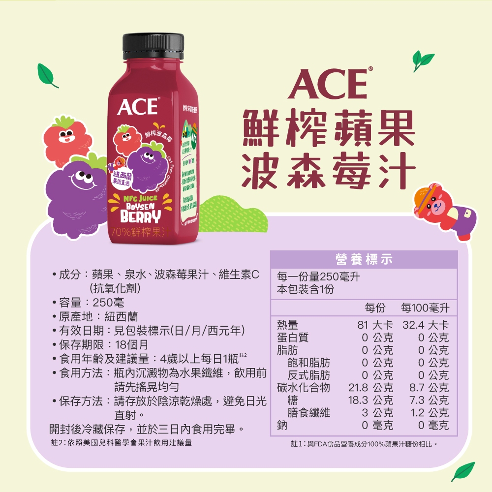 【ACE】鮮榨果汁250ml/瓶|蘋果汁/蘋果波森莓汁/蘋果黃金奇異果汁|另有箱購優惠|官方直營|蘋果波森莓汁1入|蘋果汁4入|蘋果汁1入|蘋果波森莓汁2入|蘋果波森莓汁4入|蘋果汁2入|蘋果汁1入+波森莓汁1入黃金奇異果汁2入|蘋果黃金奇異果汁1入|蘋果黃金奇異果汁2入|蘋果黃金奇異果汁4入Juice & Juice VinegarACE Family健康家庭官方旗艦店