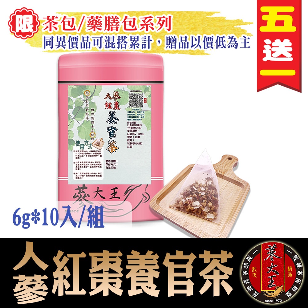 【蔘大王】人蔘紅棗養官茶►6gX10入/組❗買5送1❗調養滋補▪養氣補氣▪增強體力▪沖泡茶包