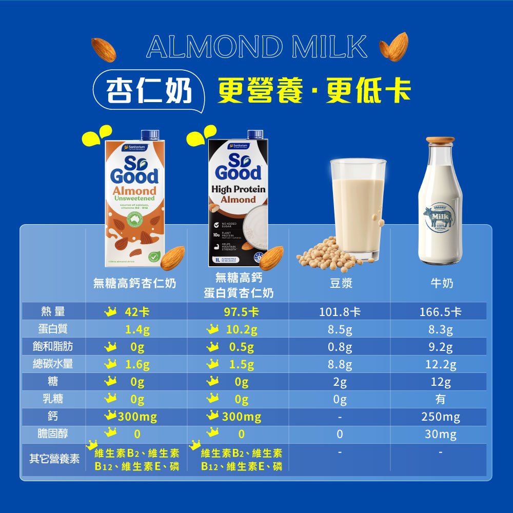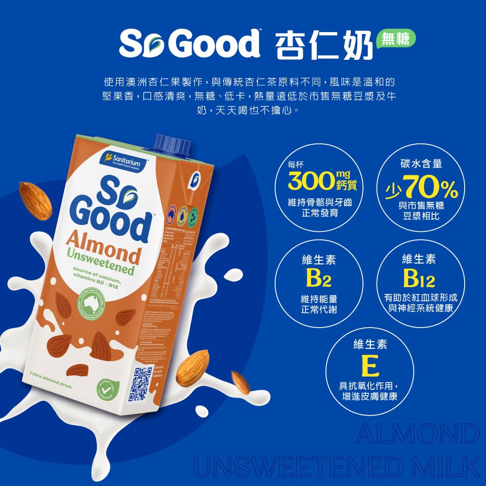 【Sanitarium】So Good澳洲原裝進口植物奶|Drink無糖低卡杏仁椰奶1L|官方直營無糖低卡杏仁椰奶1L|超取上限6罐Non-dairy MilkACE Family健康家庭官方旗艦店