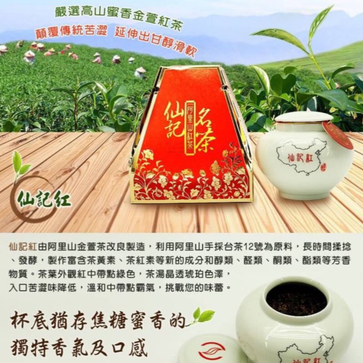 仙記名茶-小葉種金萱紅茶 茶葉禮盒 (通過產銷履歷驗證 珠露產銷班班員 來自阿里山石棹茶區的高山茶 附贈精美禮盒)150g/甕Tea & Tea Bags『仙記名茶』阿里山茶葉專賣