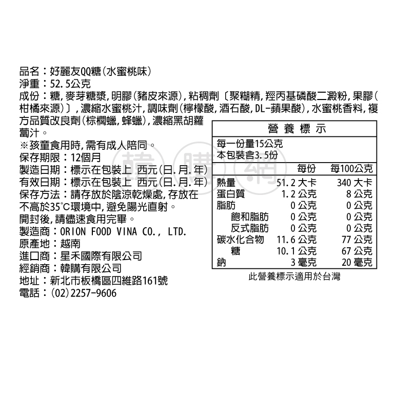 韓國好麗友 QQ軟糖(水蜜桃味)52.5g【韓購網】韓國好麗友 QQ軟糖(水蜜桃味)52.5g【韓購網】Sweets & Candy《韓購網》KOREA SHOP韓國專賣店