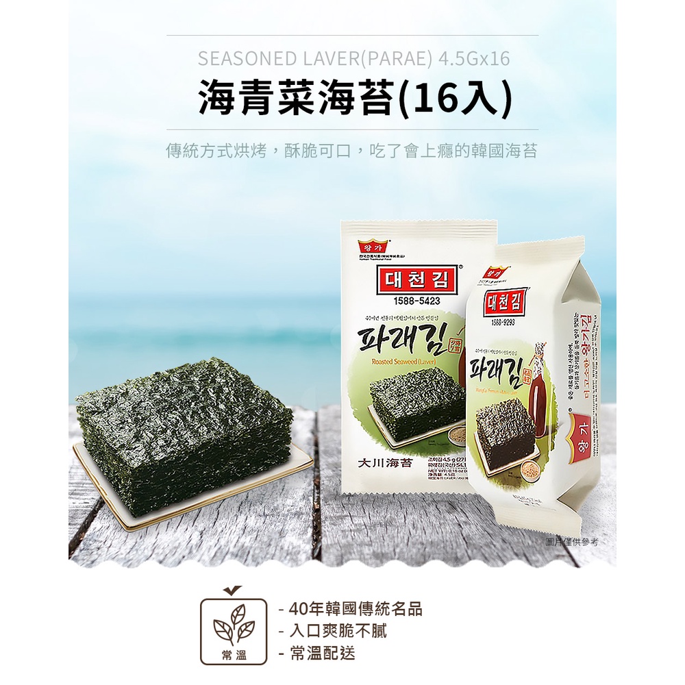 【韓味不二】韓國大川 海青菜海苔(16入)(效期2026.5.27)(超取/店到店限2袋)大川-海青菜海苔(16入) x1袋|大川-海青菜海苔(16入) x2袋Seaweed【韓味不二】 BK SHOP