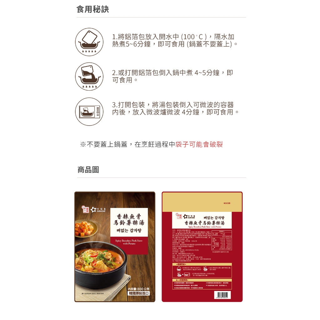 【韓味不二】OURHOME香辣無骨馬鈴薯排湯 800g【效期 2025.12.11】香辣無骨馬鈴薯排湯 800g*1入Cooked Food【韓味不二】 BK SHOP