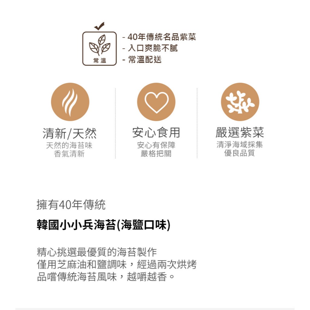 【韓味不二】韓國小小兵海苔(海鹽口味)4.5gx9入韓國小小兵海苔(海鹽口味)Seaweed【韓味不二】 BK SHOP