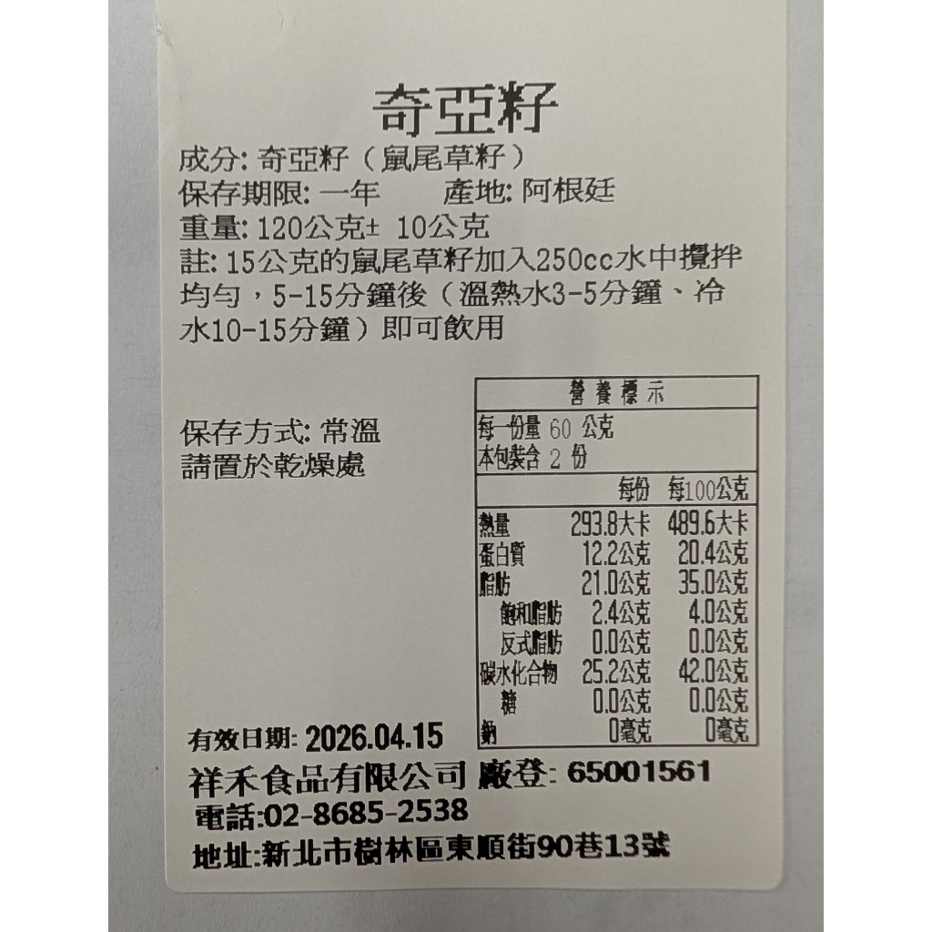 奇亞籽120g 鼠尾草籽 阿根廷產奇亞籽120g 鼠尾草籽 阿根廷產Dried Goods♡ 小妮子柑仔店 ♡