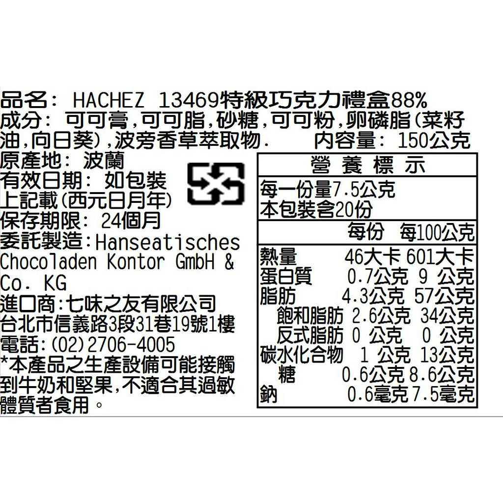 【HACHEZ】13469特級巧克力禮盒88% _150g|品牌旗艦店 情人節、告白禮、巧克力禮盒2026/04/02|2025/00/00ChocolateANGELINA安琪麗娜