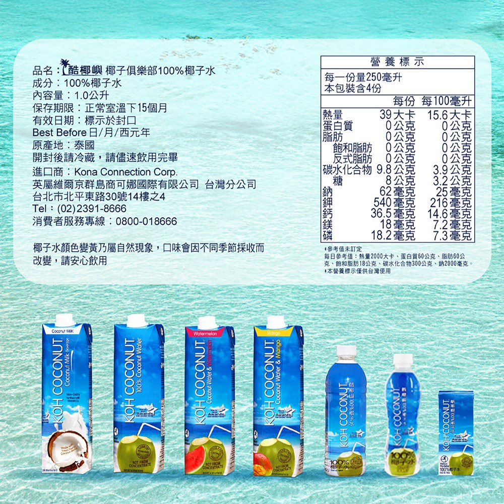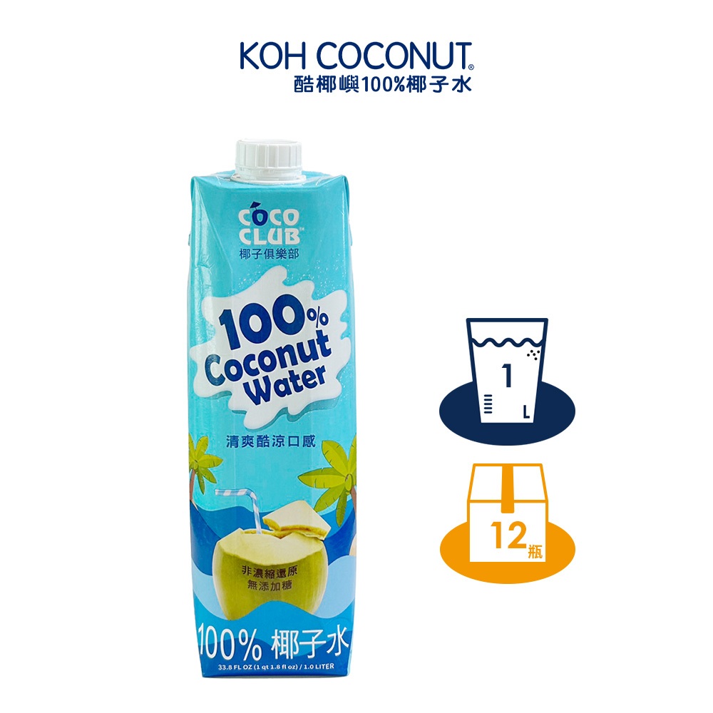 【KOH COCONUT酷椰嶼】椰子俱樂部100%椰子水 1L 晶鑽包 x12 箱購椰子俱樂部100%椰子水*12|單筆限一組Juice & Juice VinegarBABI寶貝國際 旗艦店