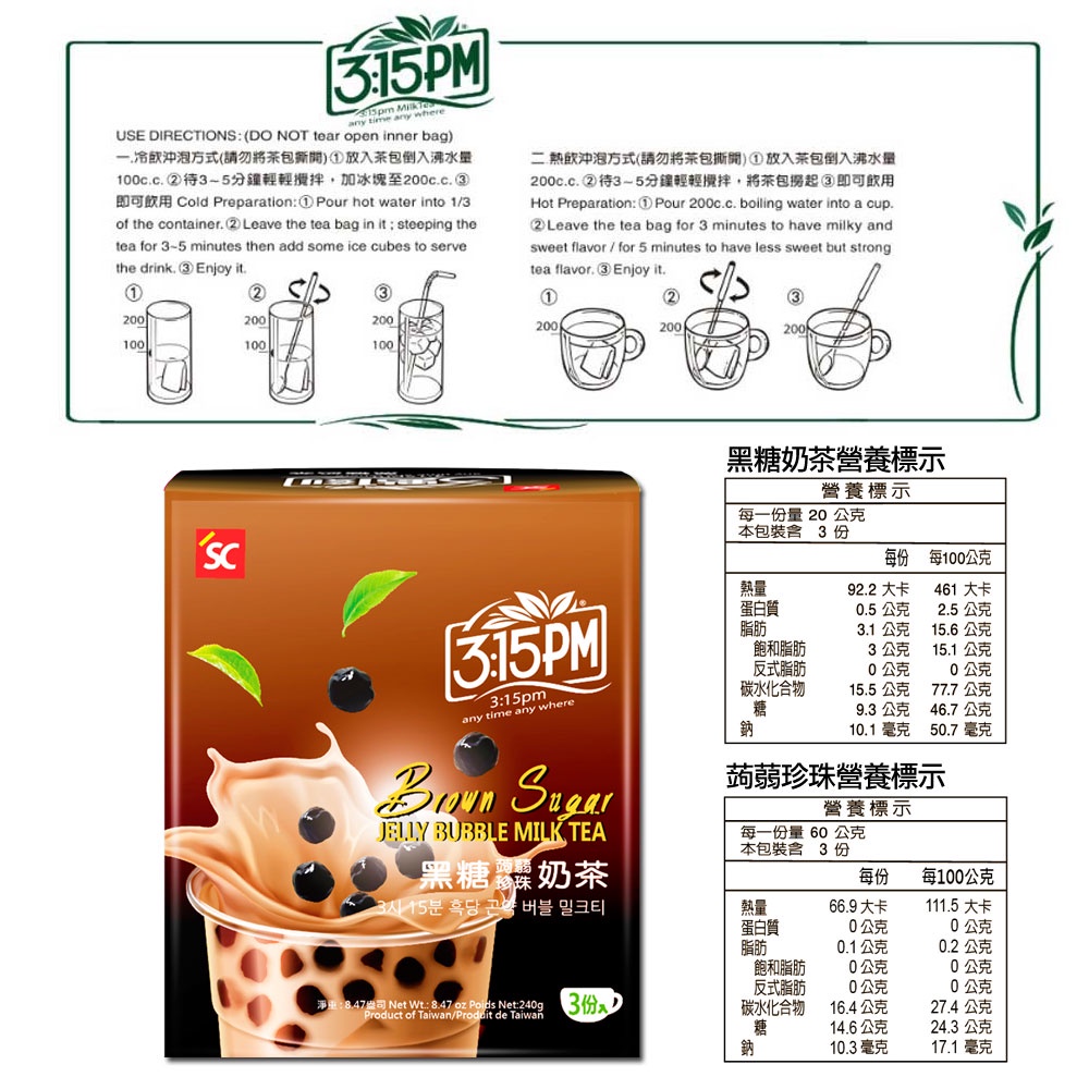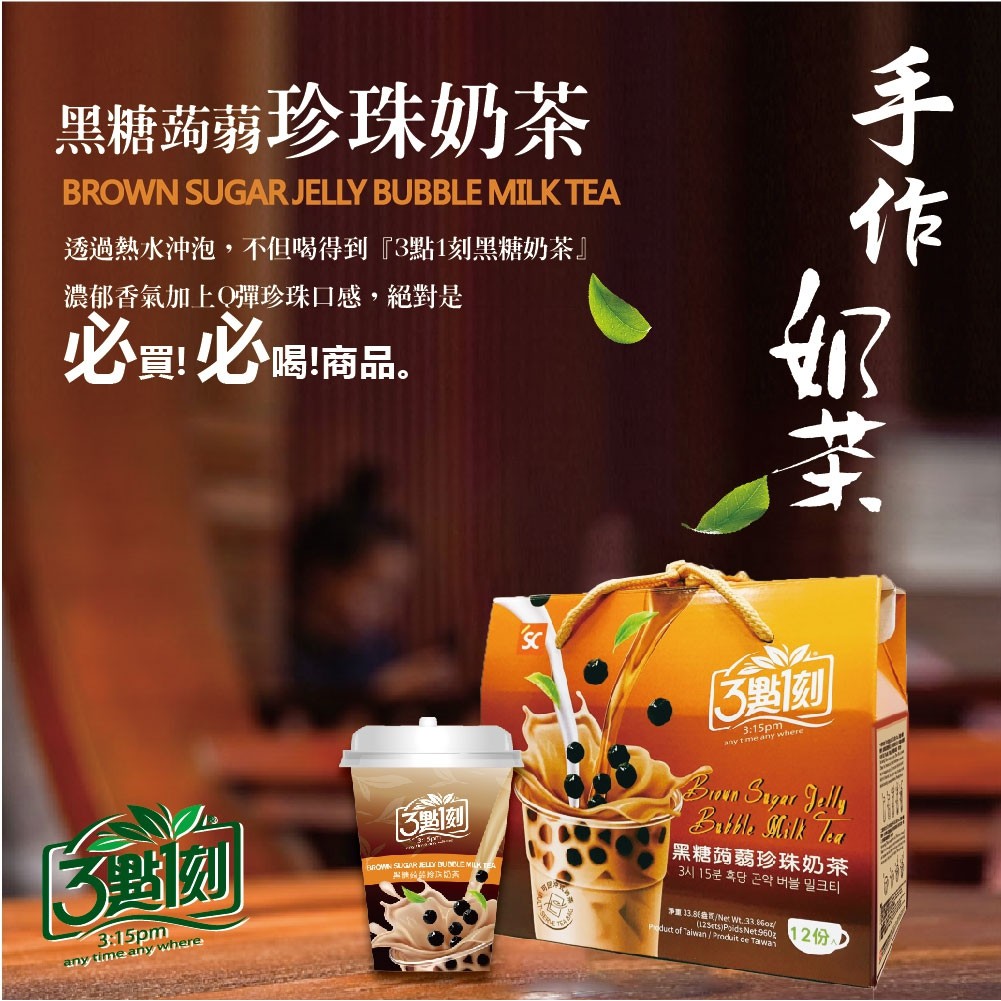 【3點1刻】黑糖蒟蒻珍珠奶茶(3入/盒)1盒Powdered Drink Mixes3點1刻|三點一刻