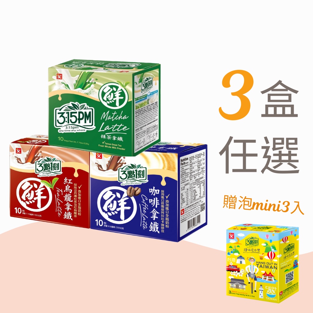 【3點1刻】經典拿鐵3盒組(10入/盒)贈泡台灣 mini版 (原味奶茶3入/盒)紅烏龍*3|咖啡*3|抹茶*3|紅烏龍*2+抹茶|抹茶*2+紅烏龍|咖啡*2+抹茶|咖啡*2+紅烏龍|紅烏龍*2+咖啡|抹茶*2+咖啡|3個口味各一Powdered Drink Mixes3點1刻|三點一刻