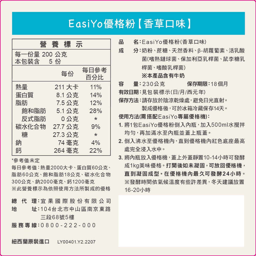 【EasiYo】紐西蘭原裝進口優格粉-香草230g|賞味期202604|官方直營經典香草230gYogurt & Cultured MilkACE Family健康家庭官方旗艦店