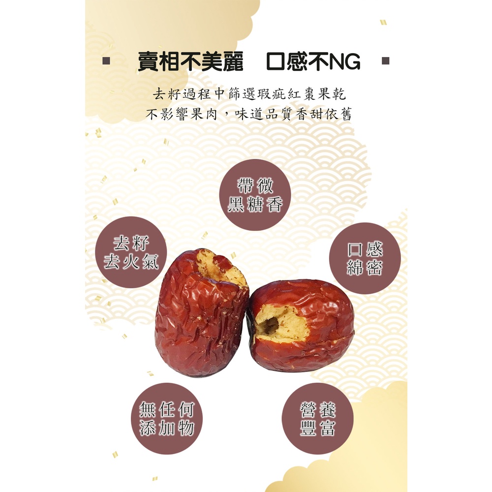 【蔘大王】NG生機台灣紅棗水果片►200g/組「 營養不NG 去籽紅棗 無籽紅棗 內在水果片 外貿協會掰掰」【蔘大王】NG生機台灣紅棗水果片►200g/組「 營養不NG 去籽紅棗 無籽紅棗 內在水果片 外貿協會掰掰」Dried Snacks【蔘大王】鮮人蔘藥膳食材