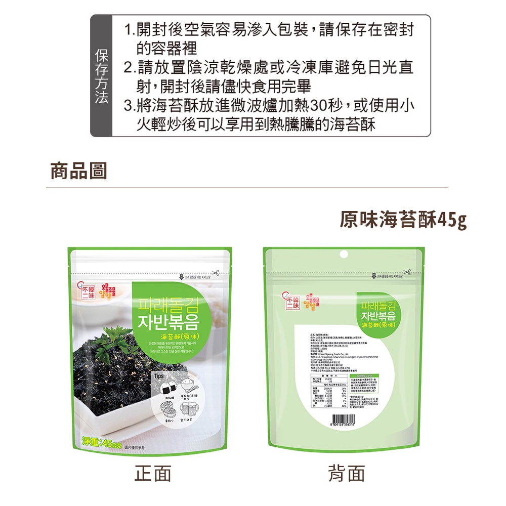 【韓味不二】海苔酥(原味)45g原味海苔酥(45g)(舊包裝)Seaweed【韓味不二】 BK SHOP
