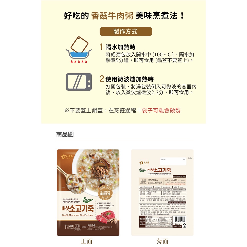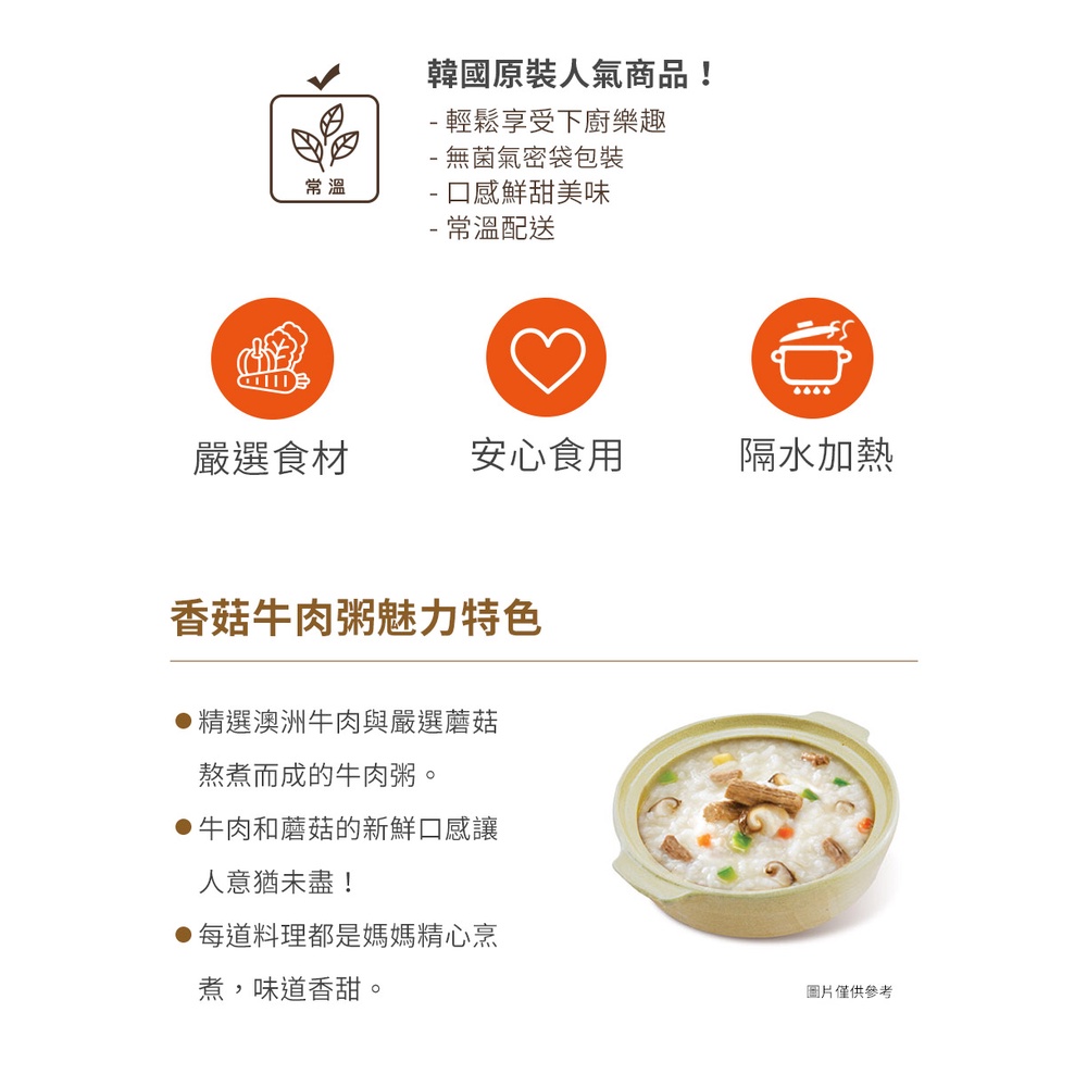 【韓味不二】OURHOME 香菇牛肉粥 (270g/包)【效期 2025.12.3】香菇牛肉粥(270g) x1入Instant Rice & Porridge【韓味不二】 BK SHOP