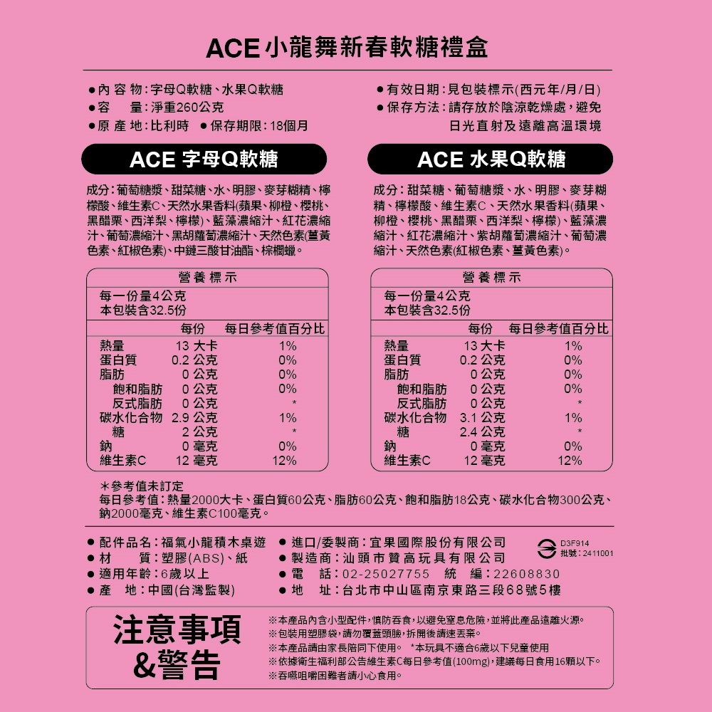 【ACE】2025新年禮盒|現貨|小龍舞新春軟糖禮盒 260g|小龍積木 桌遊 乖乖桶 交換禮物 送禮首選|官方直營2025 ACE小龍舞新春軟糖禮盒x1ACE Family健康家庭官方旗艦店
