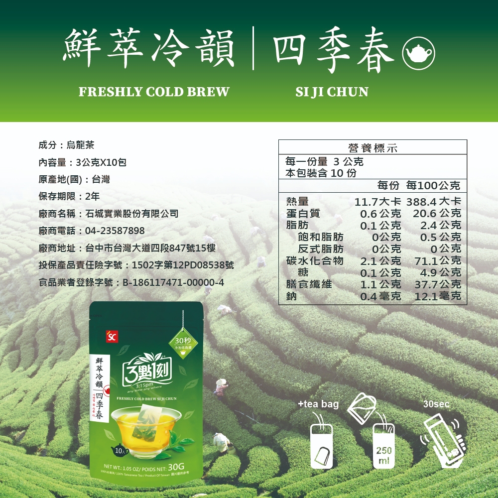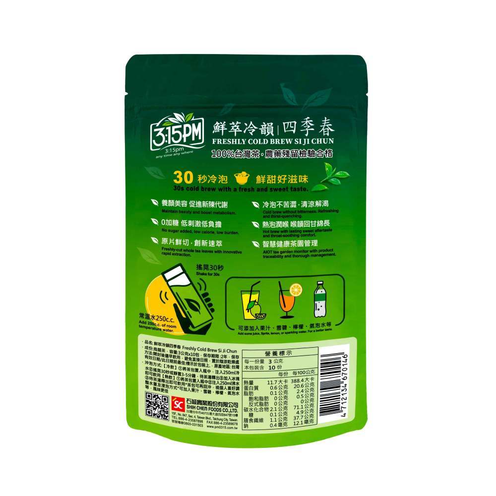 【3點1刻】鮮萃冷韻系列 3g x 10入/袋 (四季春/蜜香烏龍)四季春|蜜香烏龍Tea & Tea Bags3點1刻|三點一刻