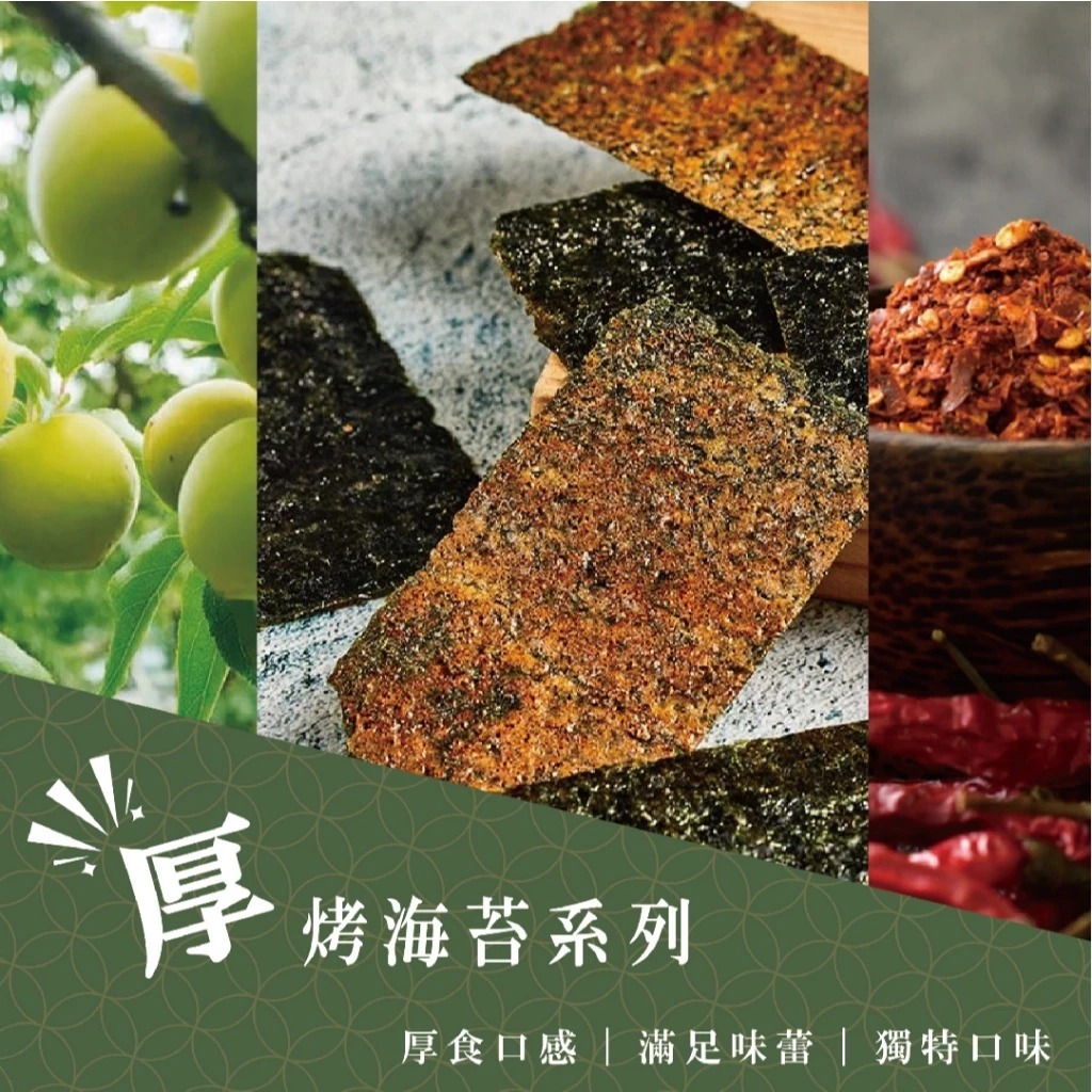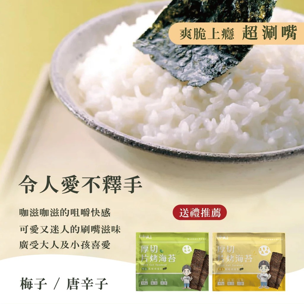 【初誠良物】厚切片烤海苔 香脆烤海苔 酥脆海苔 海苔片 燒海苔 烤海苔 45g梅子|唐辛子SeaweedAGOS購物