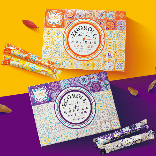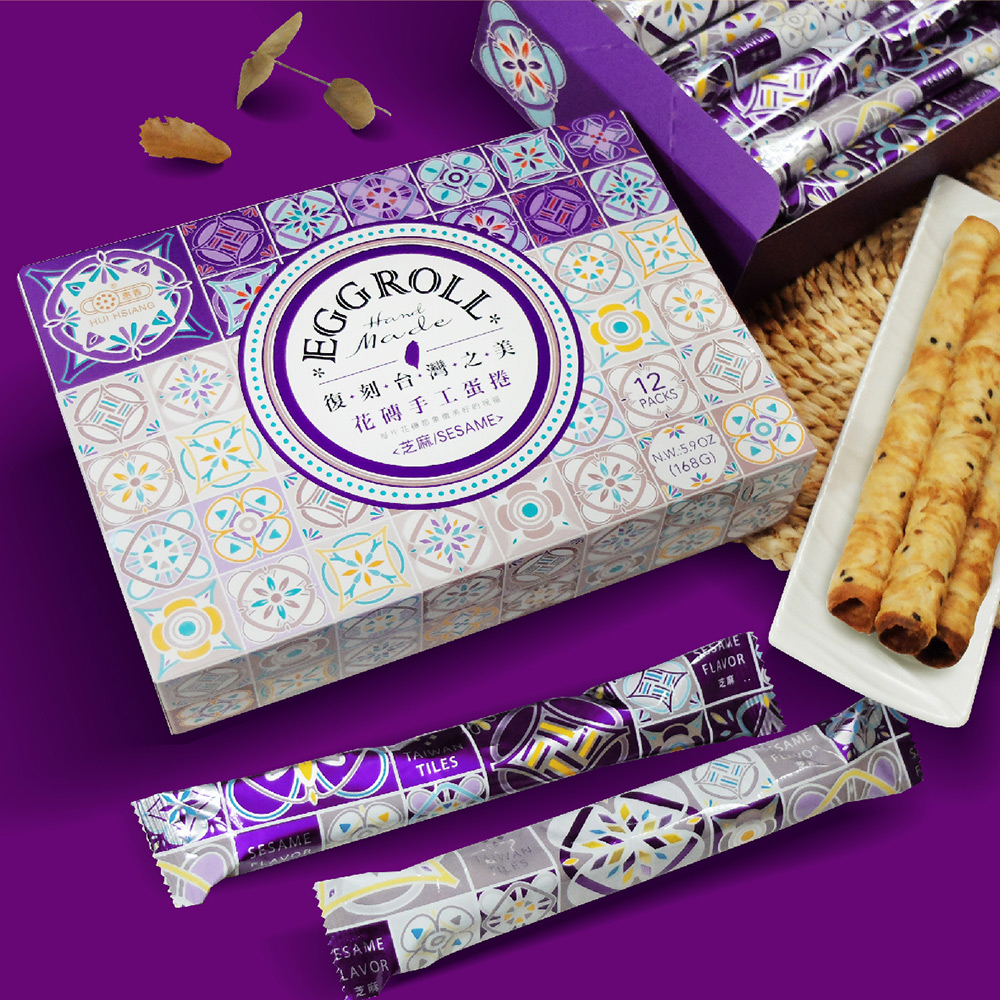 【惠香】台灣花磚手工蛋捲禮盒168g/盒(12支)蛋香口味/芝麻口味 中秋禮盒過年送禮 台灣文創禮品 新款蛋香口味|芝麻口味|蛋香口味(含提袋)|芝麻口味(含提袋)【惠香食品】