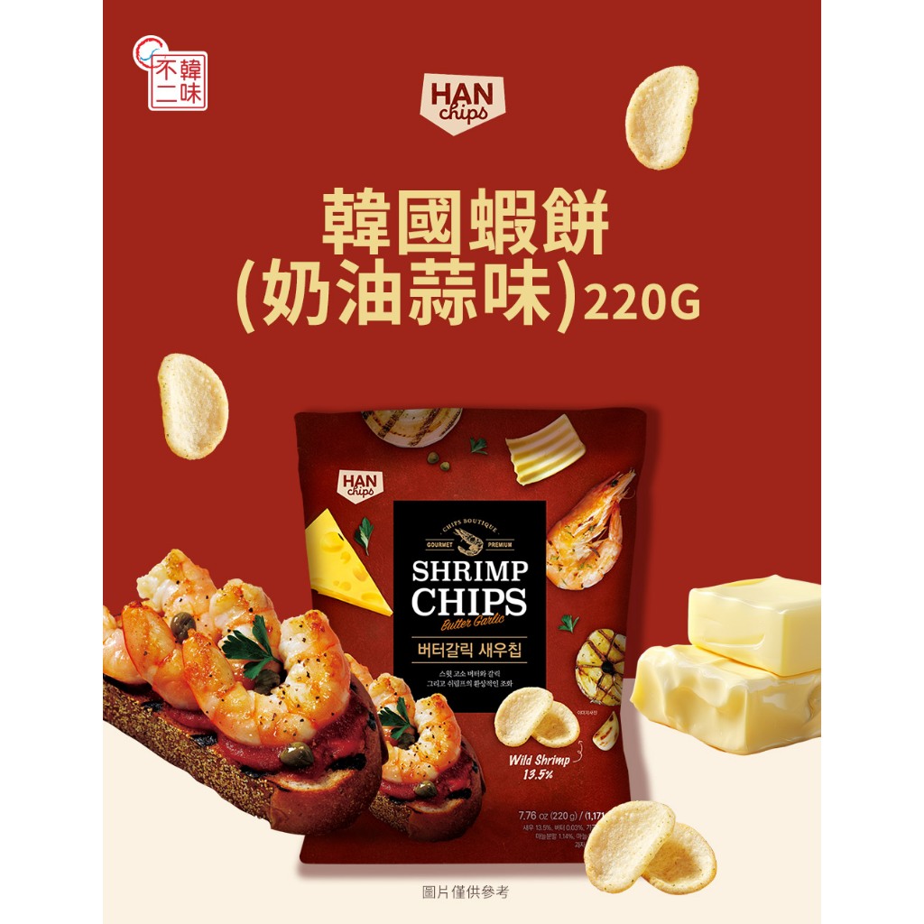 【韓味不二】韓國蝦餅(奶油蒜味) 220g(超取/蝦皮店到店限2袋)韓國蝦餅(奶油蒜味)220GBiscuits, Cookies & Wafers【韓味不二】 BK SHOP