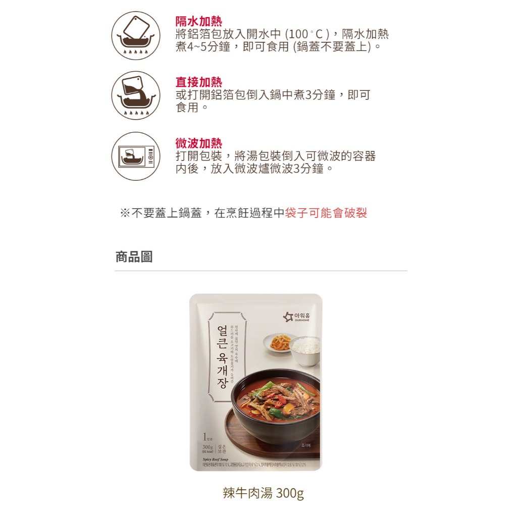 【韓味不二】OURHOME 辣牛肉湯 300g(效期25.12.11)辣牛肉湯(300g)Cooked Food【韓味不二】 BK SHOP
