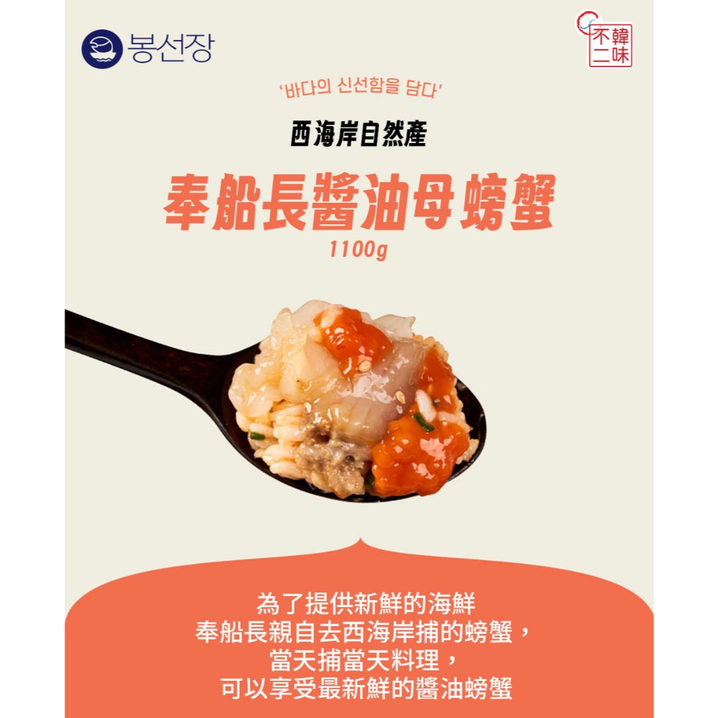 【韓味不二】韓國奉船長-醬油母螃蟹1100g韓國奉船長-醬油母螃蟹1100g*1盒Seafood【韓味不二】 BK SHOP