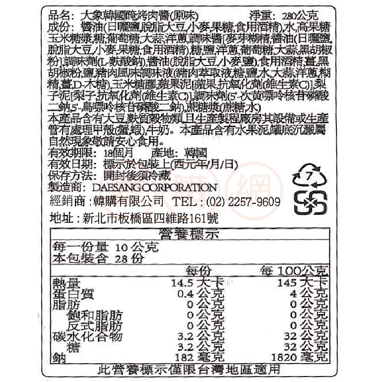 韓國DAESANG大象水梨醃烤肉醬280g(原味/辣味)【韓購網】原味*1+辣味*1|原味*2(2026.01.03有效)|辣味*2(2026.03.25有效)|原味*1(2026.01.03有效)|辣味*1(2026.03.25有效)Seasonings & Condiments《韓購網》KOREA SHOP韓國專賣店