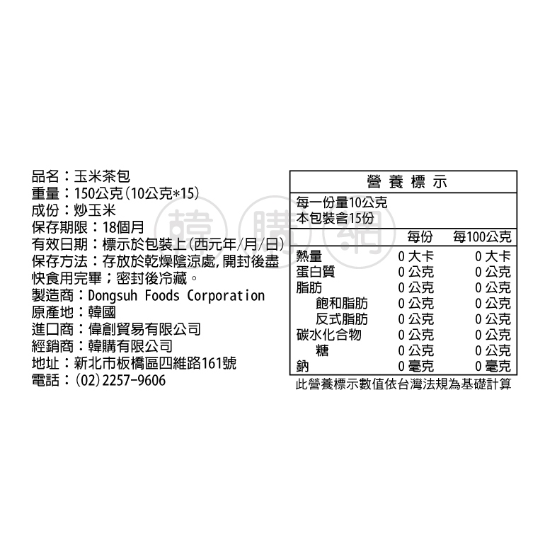 韓國Dongsuh 玉米茶150g(10gX15入)【韓購網】韓國Dongsuh 玉米茶150g(10gX15入)【韓購網】Tea & Tea Bags《韓購網》KOREA SHOP韓國專賣店