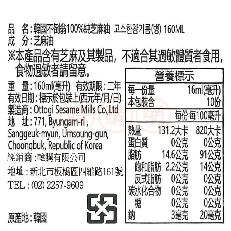 韓國不倒翁芝麻油160ml【韓購網】韓國不倒翁芝麻油160ml【韓購網】Oil《韓購網》KOREA SHOP韓國專賣店