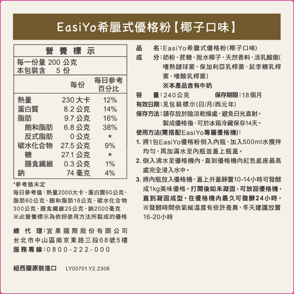 【EasiYo】紐西蘭原裝進口優格粉-希臘式優格粉椰子240g包|賞味期202601|官方直營【EasiYo】紐西蘭原裝進口優格粉-希臘式優格粉椰子240g包|賞味期202601|官方直營Yogurt & Cultured MilkACE Family健康家庭官方旗艦店